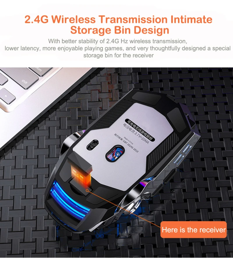 Беспроводная оптическая USB-мышь, 2,4 ГГц, 1600DPI, 7 цветов светодиодный светодиодная подсветка, перезаряжаемая, бесшумная, для ПК, ноутбука