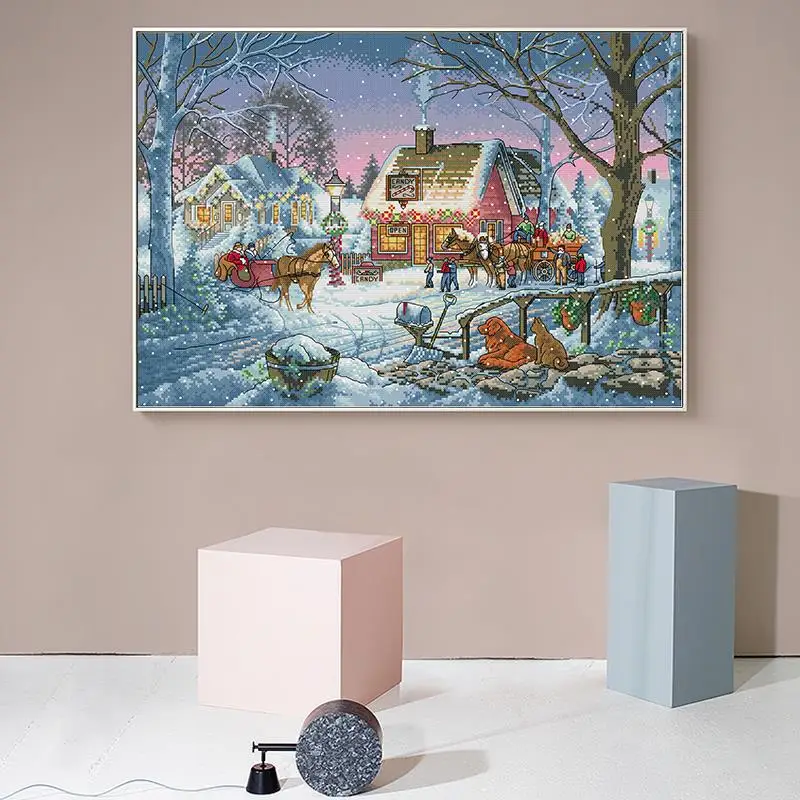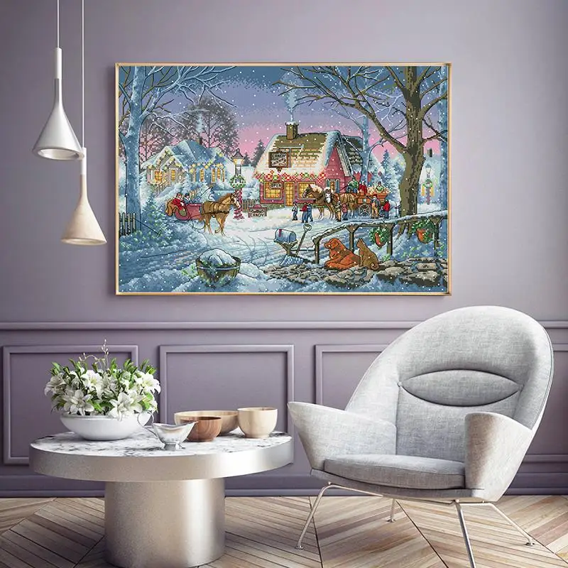 Наборы зимней вышивки крестиком DIY теплый рисунок снежного городка 14CT 11CT напечатанный холст хлопок нить вышивка набор домашний декор