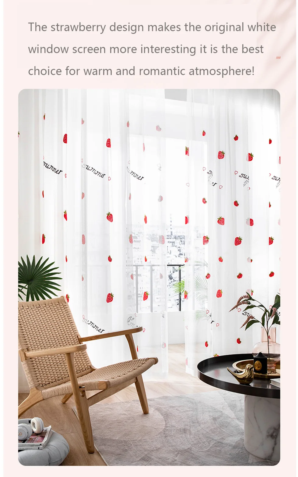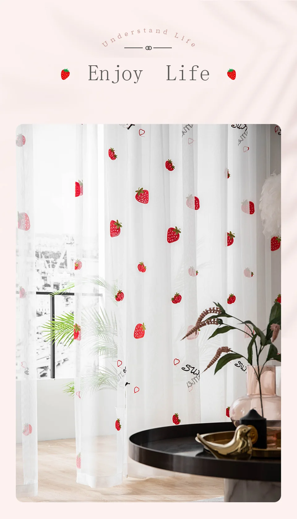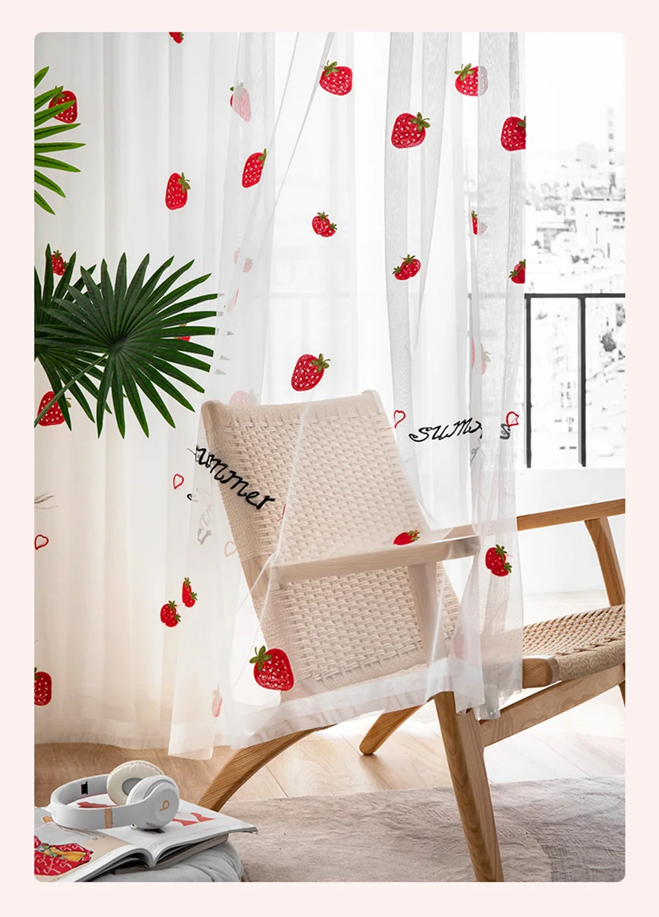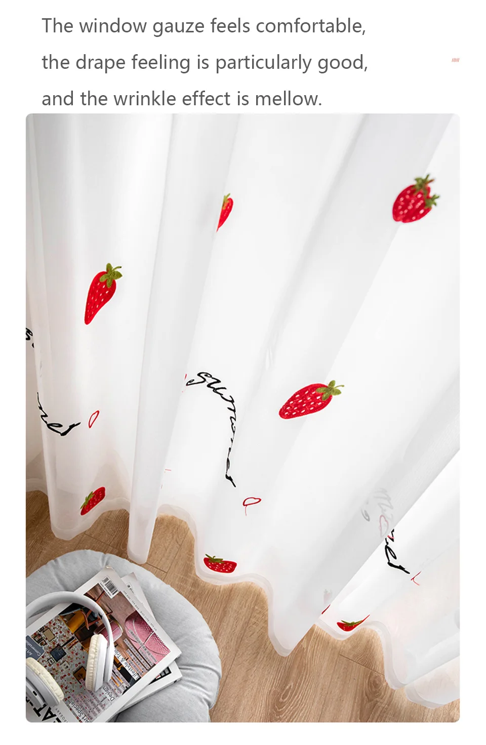 Вышитые клубники, тюлевые занавески для гостиной, белые сплошные занавески для девочки, детской спальни, занавески из вуали для кухни