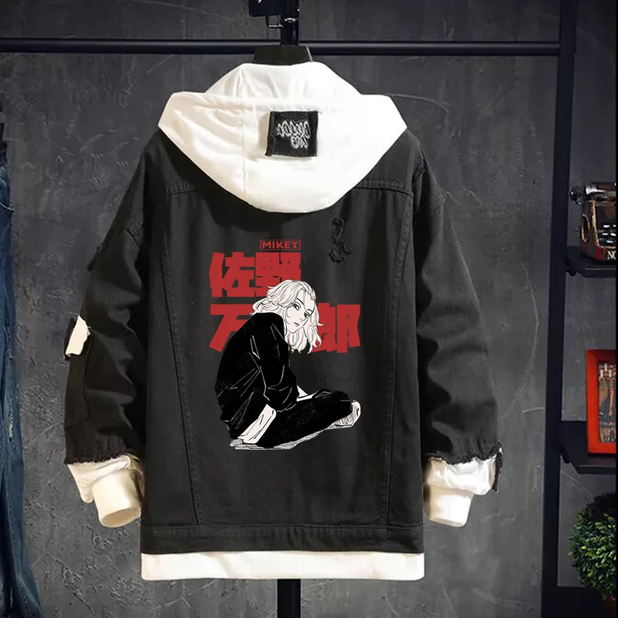 Мужская джинсовая куртка с капюшоном, черная Толстая куртка из денима с японским аниме принтом Токио, одежда для косплея, Осень-зима