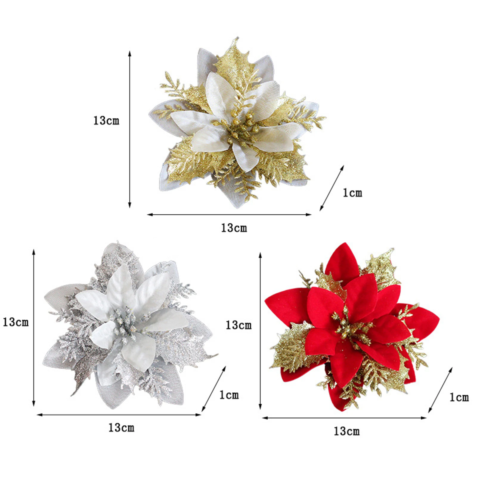 Декор для рождественской елки, блестящие Искусственные цветы с стеблями, красный, золотой, серебряный цветок для свадебной вечеринки, праздничный цветок, Декор