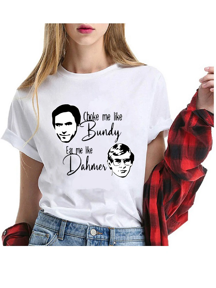 100% хлопок Хэллоуин Графические футболки для женщин Kawaii одежда унисекс Harajuku американский серийный убийца Большие женские футболки