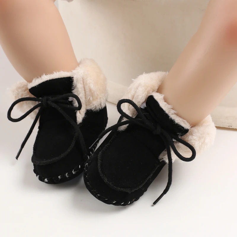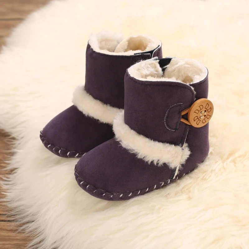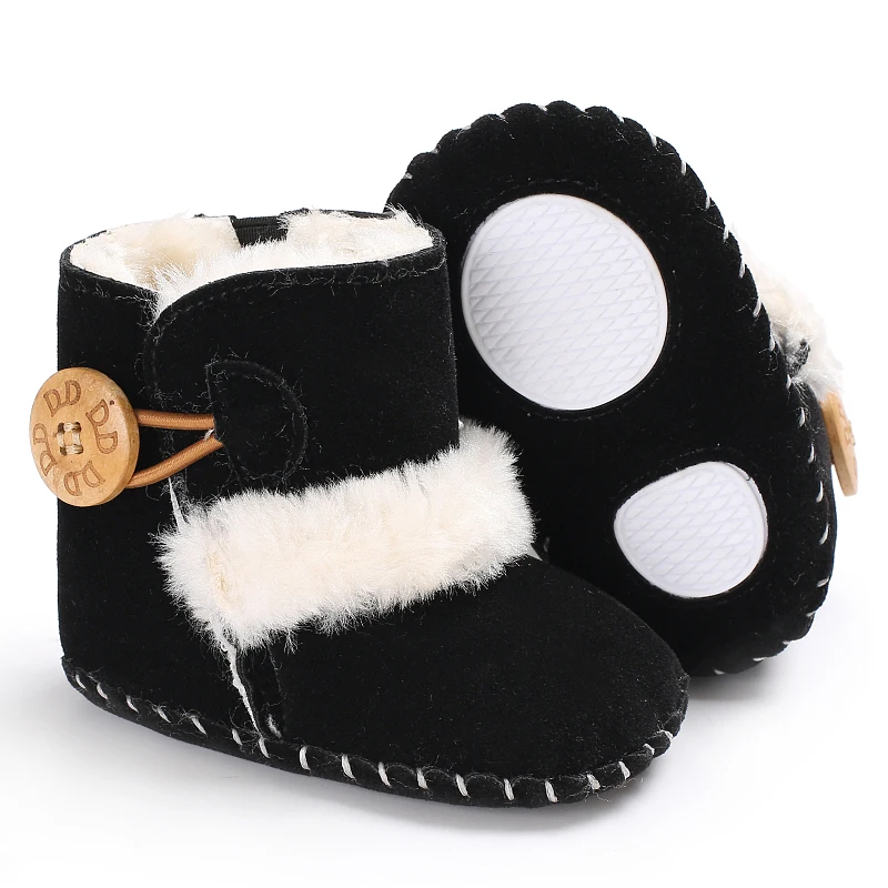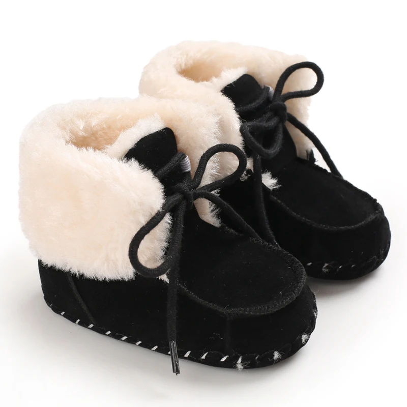 Детские ботинки, зимняя теплая обувь для маленьких девочек и мальчиков, однотонная модная пушистая обувь для малышей 0-18 месяцев, противоскользящая обувь
