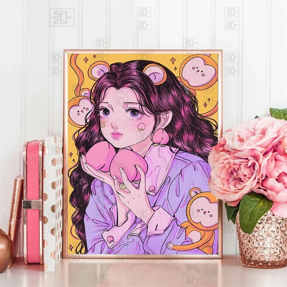 Набор для алмазной живописи 5D сделай сам, картина с портретом мультяшной девушки, полноразмерная, круглая, вышивка с персонажами, вышивка крестиком, ручная работа, Подарочный декор для стен