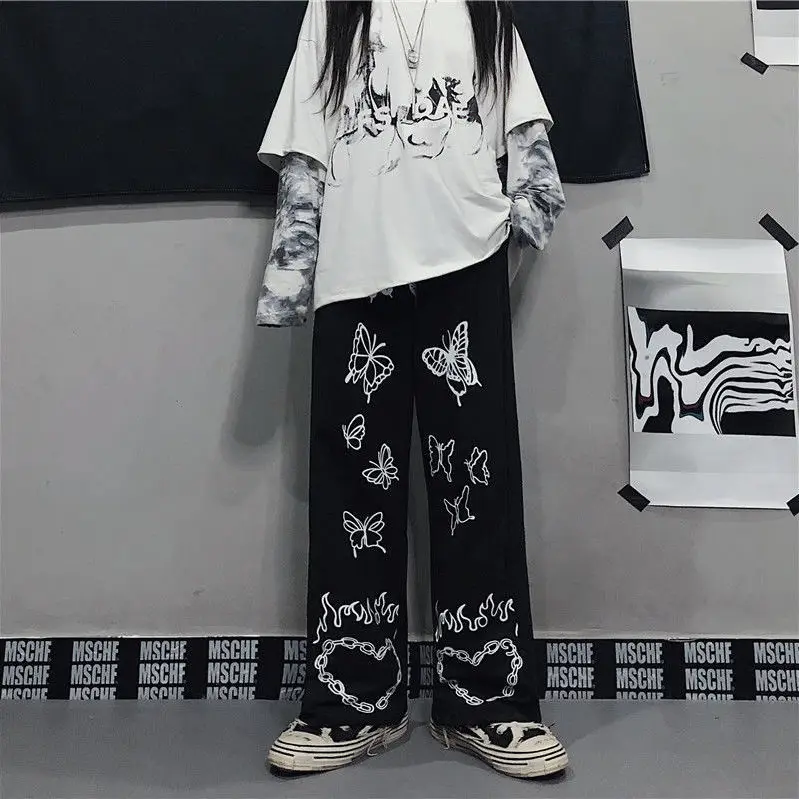 Женские брюки оверсайз Y2k, аниме свободные прямые поставки, корейс...