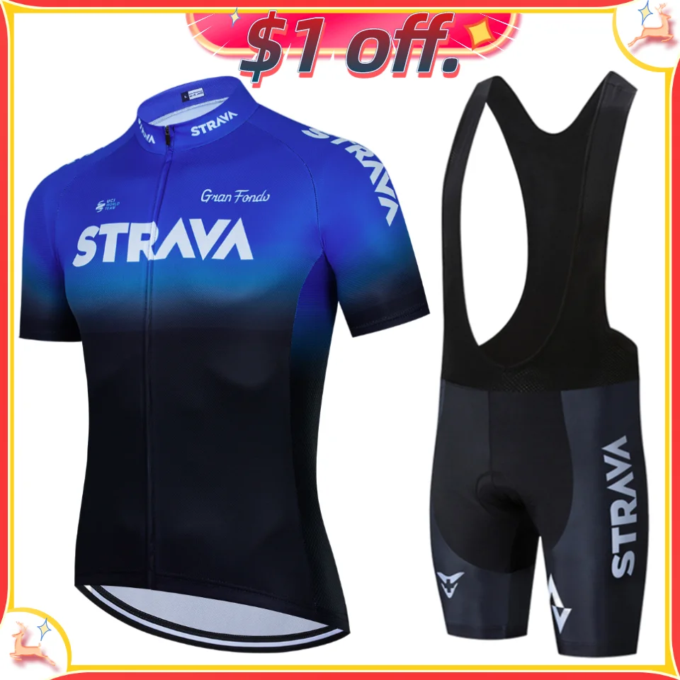 Комплект одежды STRAVA мужской для велоспорта, летняя велосипедная майка 19D, гелевые брюки с нагрудником, 2022