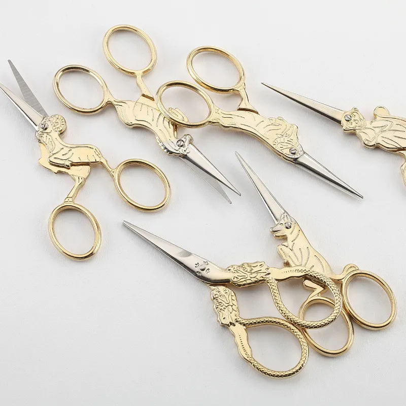 Китайские 12 зодиака формы золотые ножницы из нержавеющей стали ножницы, стилизованные под старину для шитья высокое качество острые швейные нитки ножницы