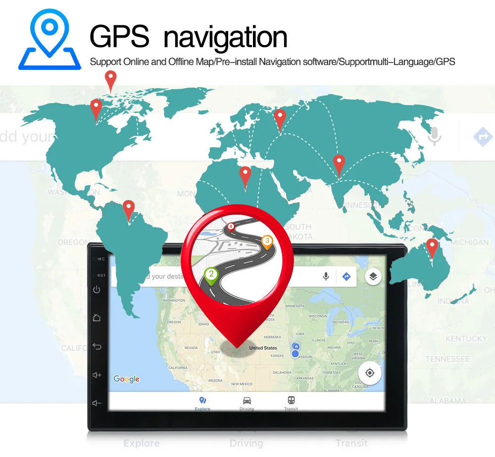 7-дюймовый автомобильный универсальный навигатор Android 1 + 16mp5, воспроизведение по Bluetooth, 360gps, умный аппарат все в одном