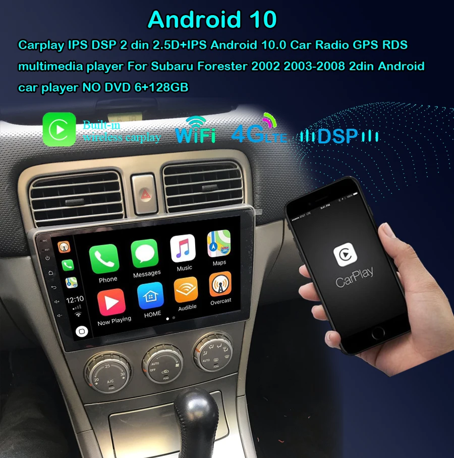 Автомагнитола для Subaru Forester SG 128-2002, 6G, 2008G, Android 10, мультимедийный видео, DVD-плеер, навигация, 2 Din, Авторадио