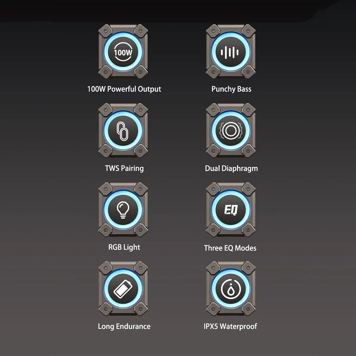 Беспроводная bluetooth-Колонка 100 Вт, Портативная колонка, Саундбар с диафрагмой, динамик с RGB светильник кой, уличная колонка с bluetooth