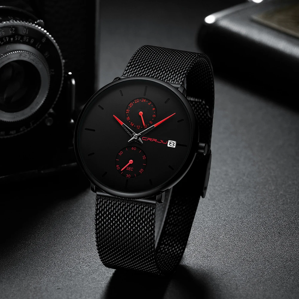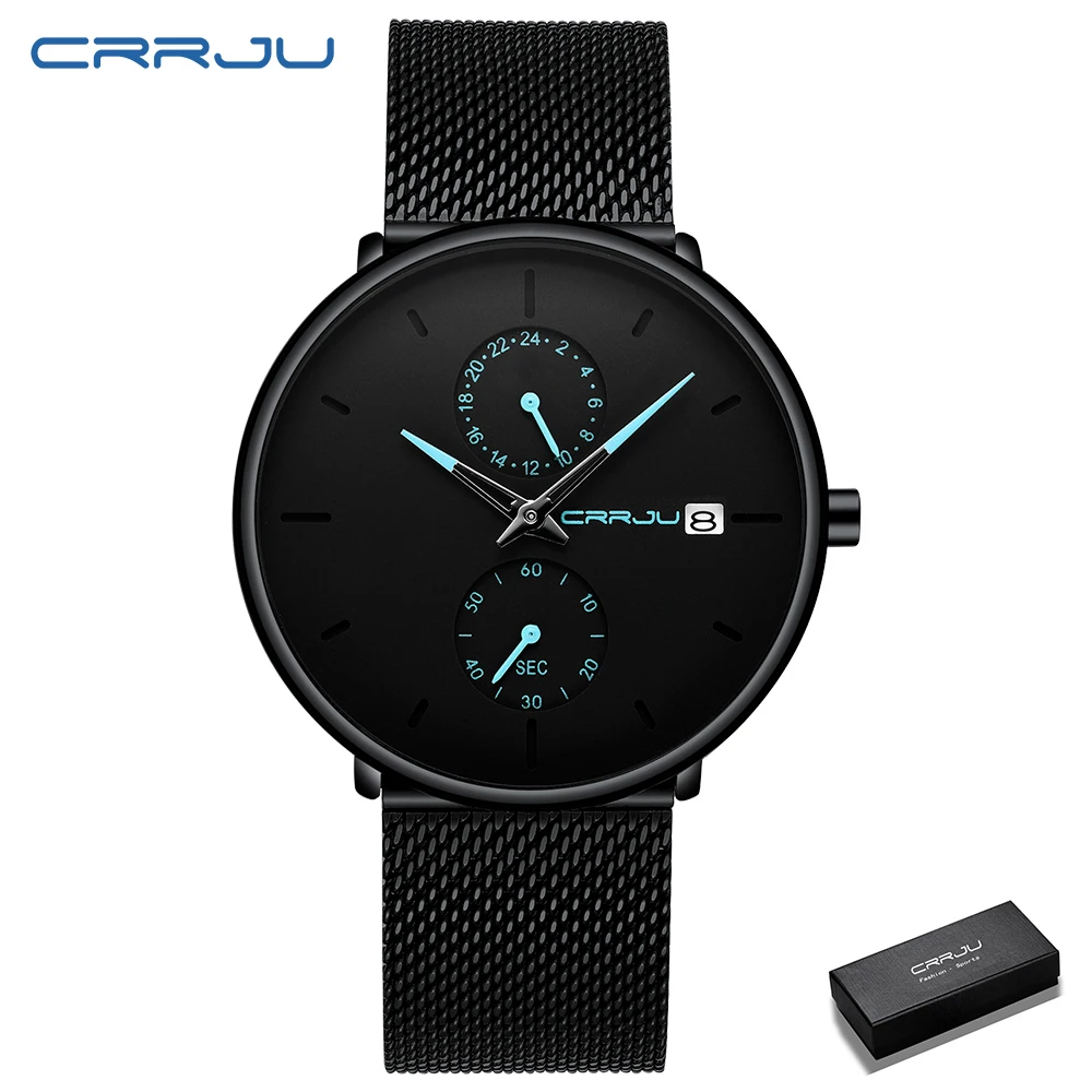 Часы CRRJU мужские, минималистичные, ультратонкие, водонепроницаемы...