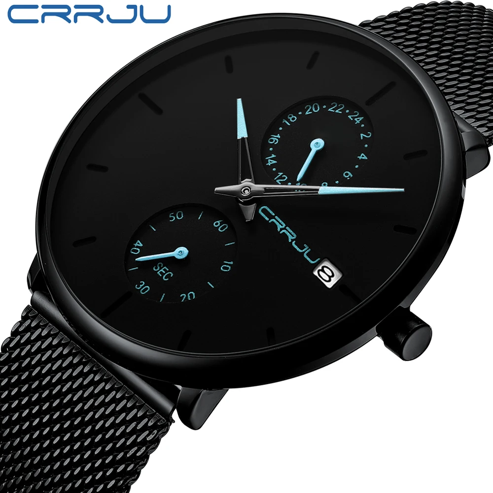 CRRJU 2019 модные мужские часы деловые простые кварцевые часы мужск...