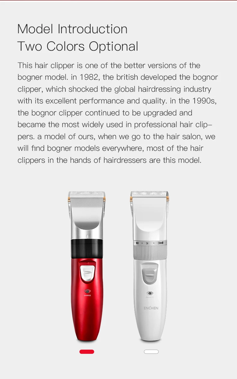 Эта машинка для стрижки волос является одной из лучших версий модели bogner. В 1982 году британская компания bognor clipper разработала модель, которая шокировала глобальную парикмахерскую промышленность своей отличной производительностью и качеством. В 1990s, bognor машинка для стрижки по-прежнему модернизированный и стала самой широко используется в профессиональная машинка для стрижки волос. Наша модель, когда мы ходим в парикмахерскую, мы найдем модели bogner везде, большинство машинки для стрижки волос в руках парикмахеров-это эта модель.