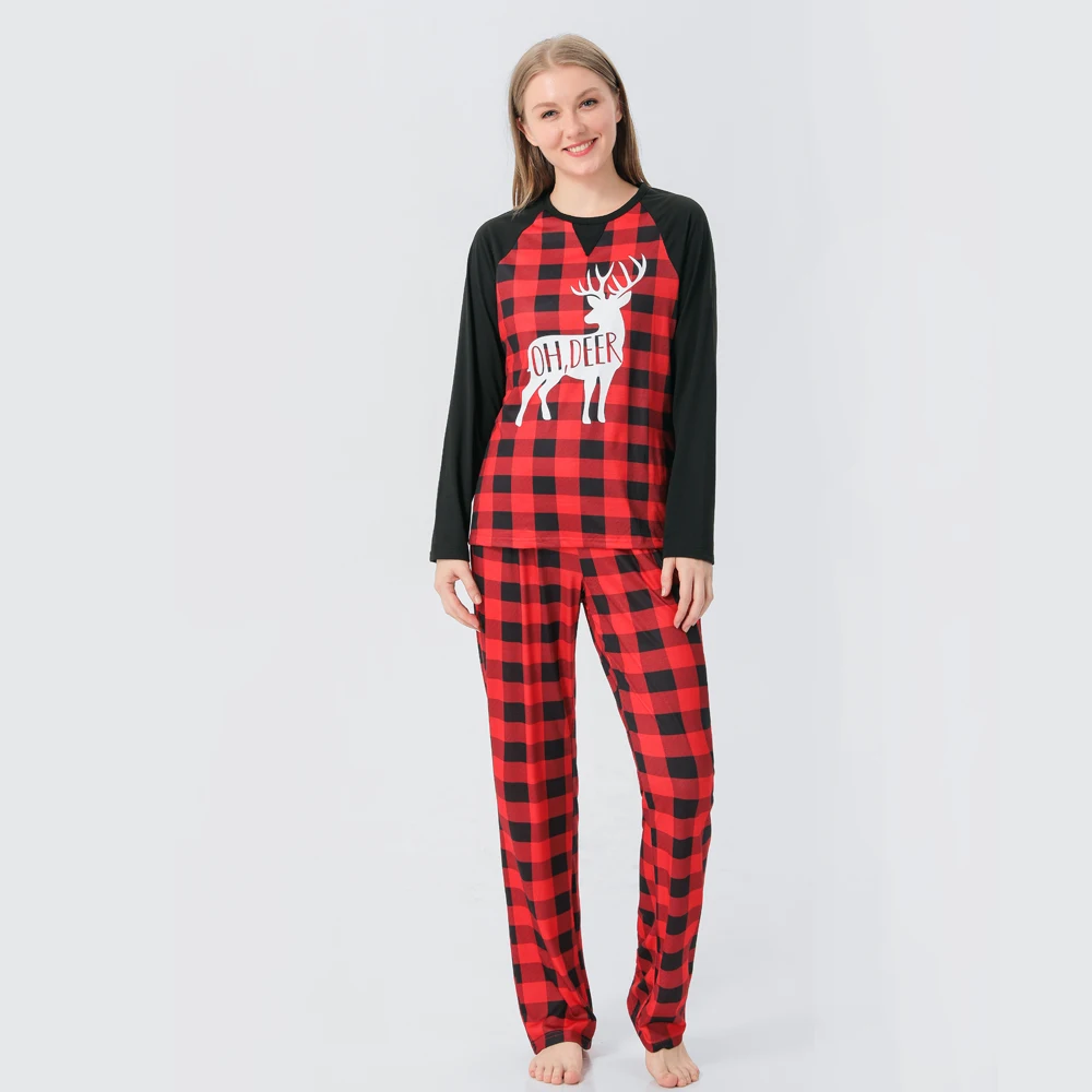Пижама с рождественскими оленями, топ в клетку + штаны, Пижама для ...