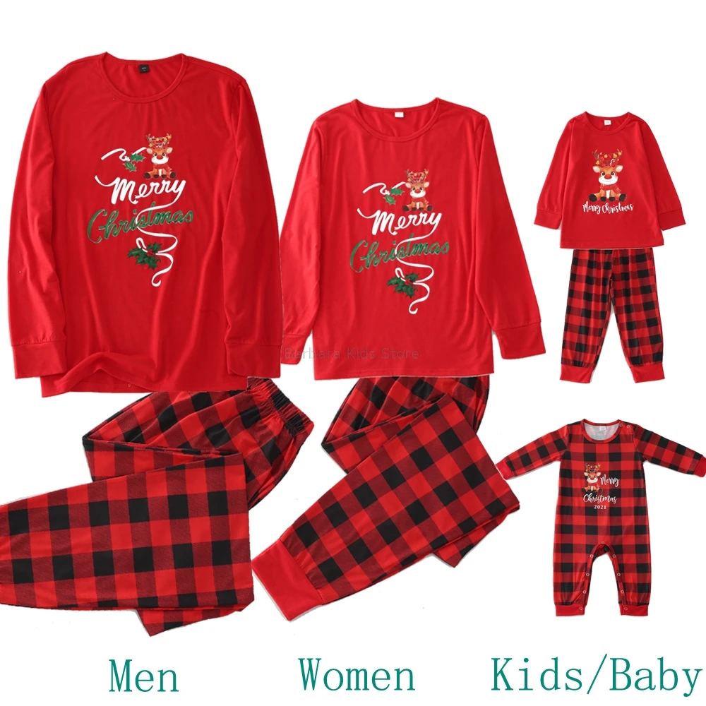 Рождественские пижамные комплекты с оленем, семейный вид, 2021 красные Семейные пижамы, одежда для сна, для отца, детей, мамы, дочери, рождественские пижамы, детский комбинезон