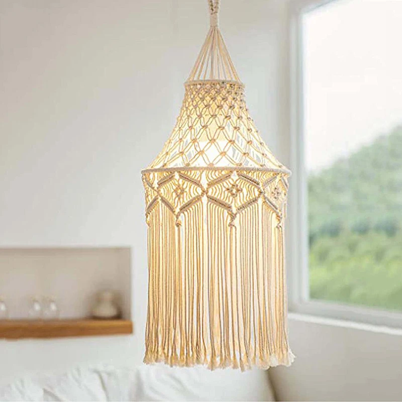 Абажур ручной вязки гобелен из макраме подвесной светильник с кисто...