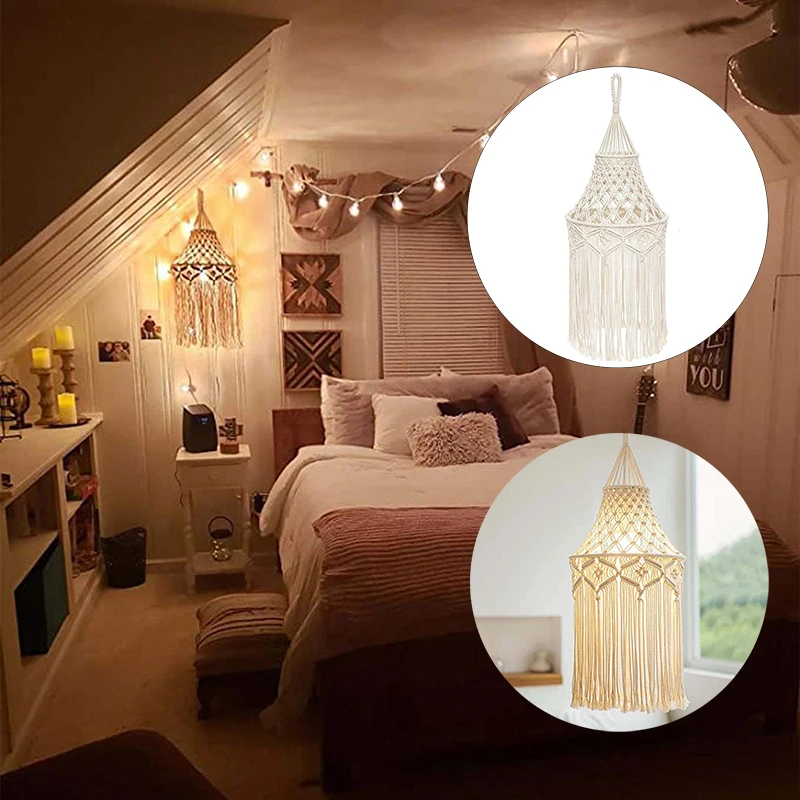 Описание: Этот красивый абажур макраме изготовлен из хлопковой веревки и уникального дизайна. Этот уникальный и элегантный дизайн привнесет богемную атмосферу в вашу комнату и красоту вашего пространства.Этот предмет станет потрясающим акцентом для гостиной, спальни, детской комнаты, декора стен в стиле бохо, свадебного декора или богемной тематической вечеринки.Этот абажур макраме не включает лампочку, вы можете установить ее внутри самостоятельно, чтобы создать декоративное комфортное освещение, естественную, мягкую и теплую атмосферу в вашей комнате.Сделано из натурального хлопка и стали. Эти подвесные фонарики-прекрасный способ подчеркнуть комнату или событие!
