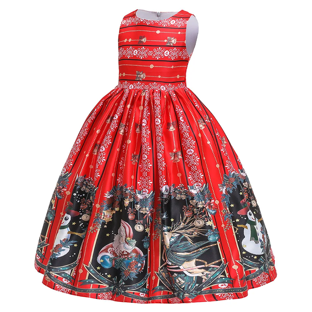 Длинное платье для девочек 4-14 лет, с принтом в виде Санта-Клауса