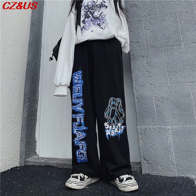 Женские брюки оверсайз Y2k, аниме свободные прямые поставки, корейс...
