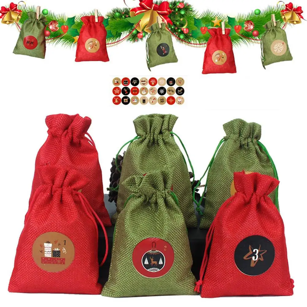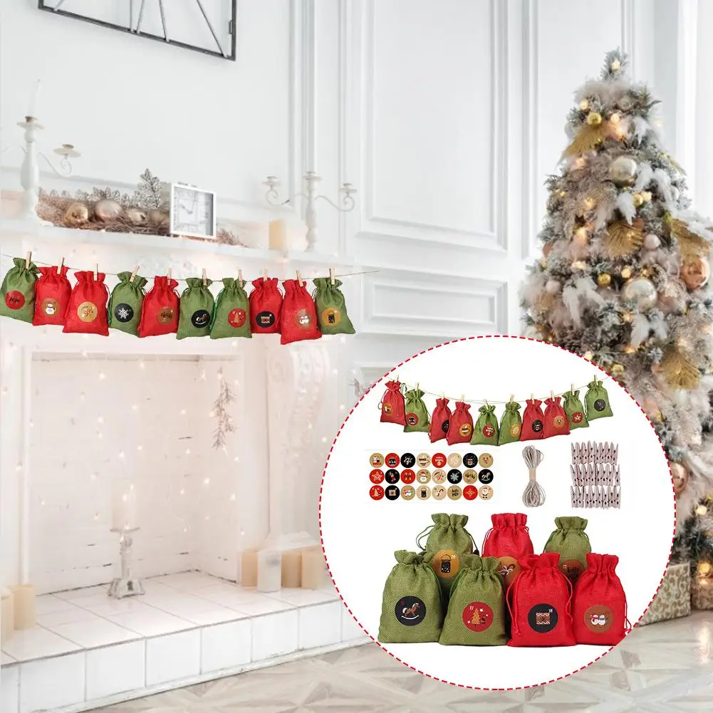 Рождественский Адвент-календарь, 24 шт., льняные подвесные мешочки ...