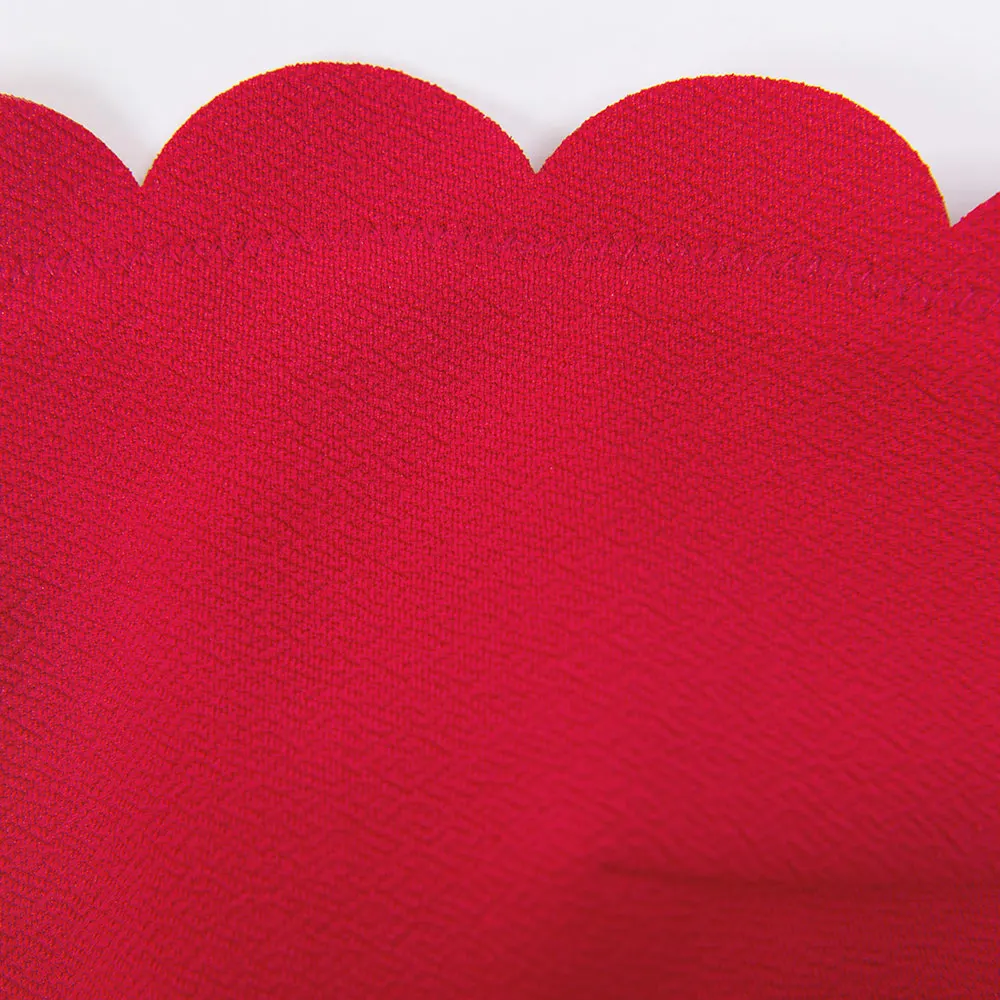 Окунитесь в солнце с уверенностью в нашем красном топе бикини-бандо с зубчатыми краями. С зубчатой отделкой и застежкой на крючок сзади. Дополнит образ нашим низом бикини Kensley Red с низкой талией.Модель носит размер SРост: 165 см, обхват груди: 86 см, обхват талии: 66 см, обхват бедер: 94 см
