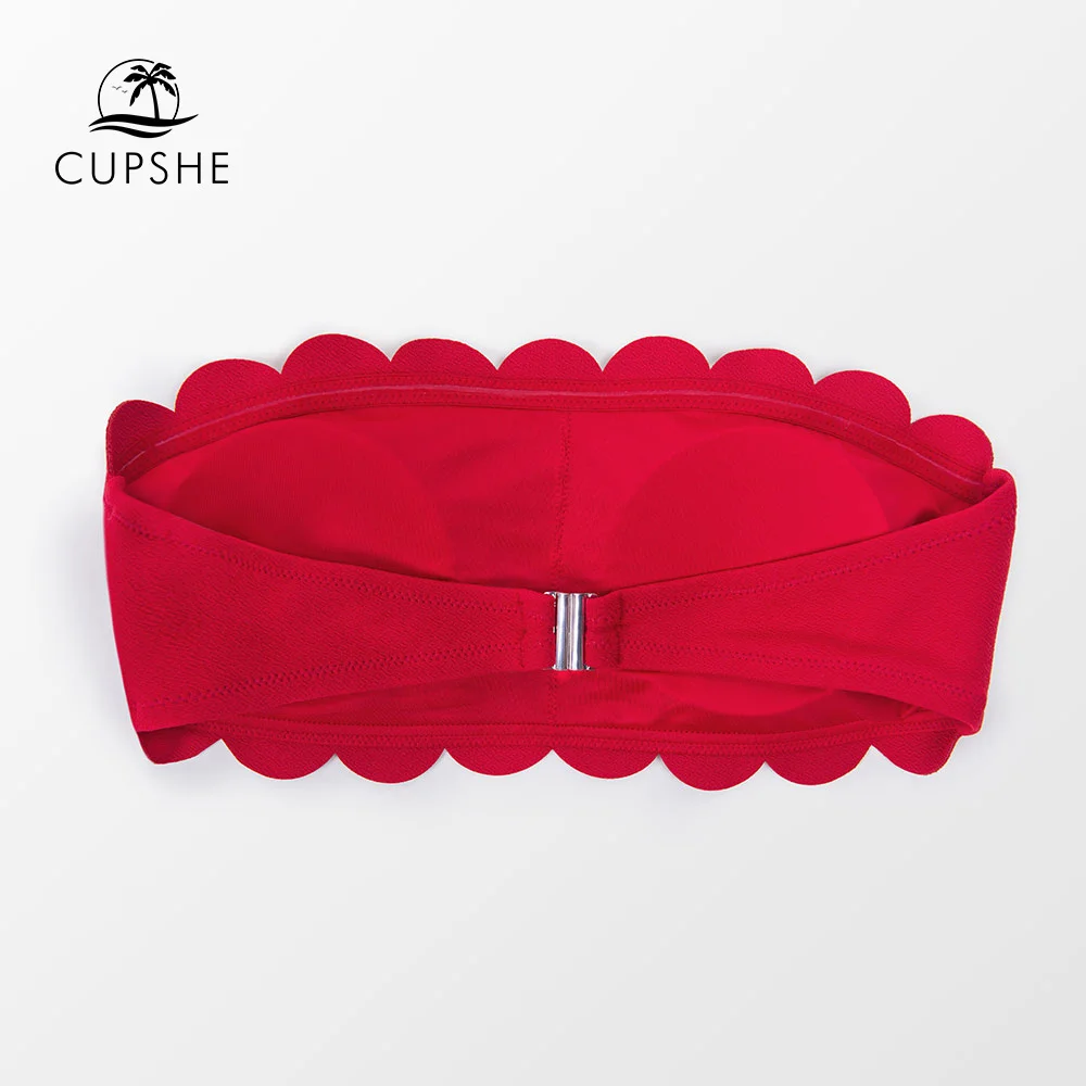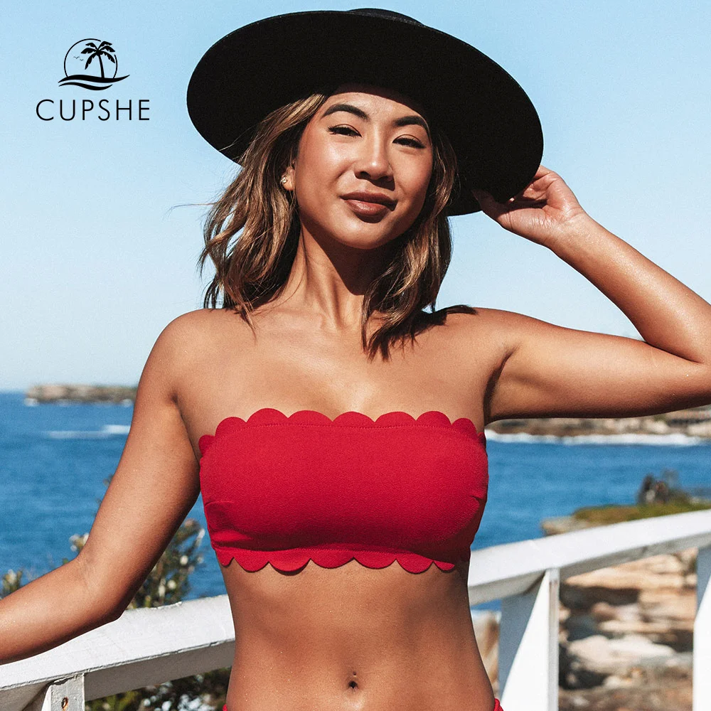 CUPSHE красный волнистый бандо Бикини Топ только для женщин сексуальный без бретелек сзади крюк Топ 2022 пляж раздельный купальник бюстгальтер Топ