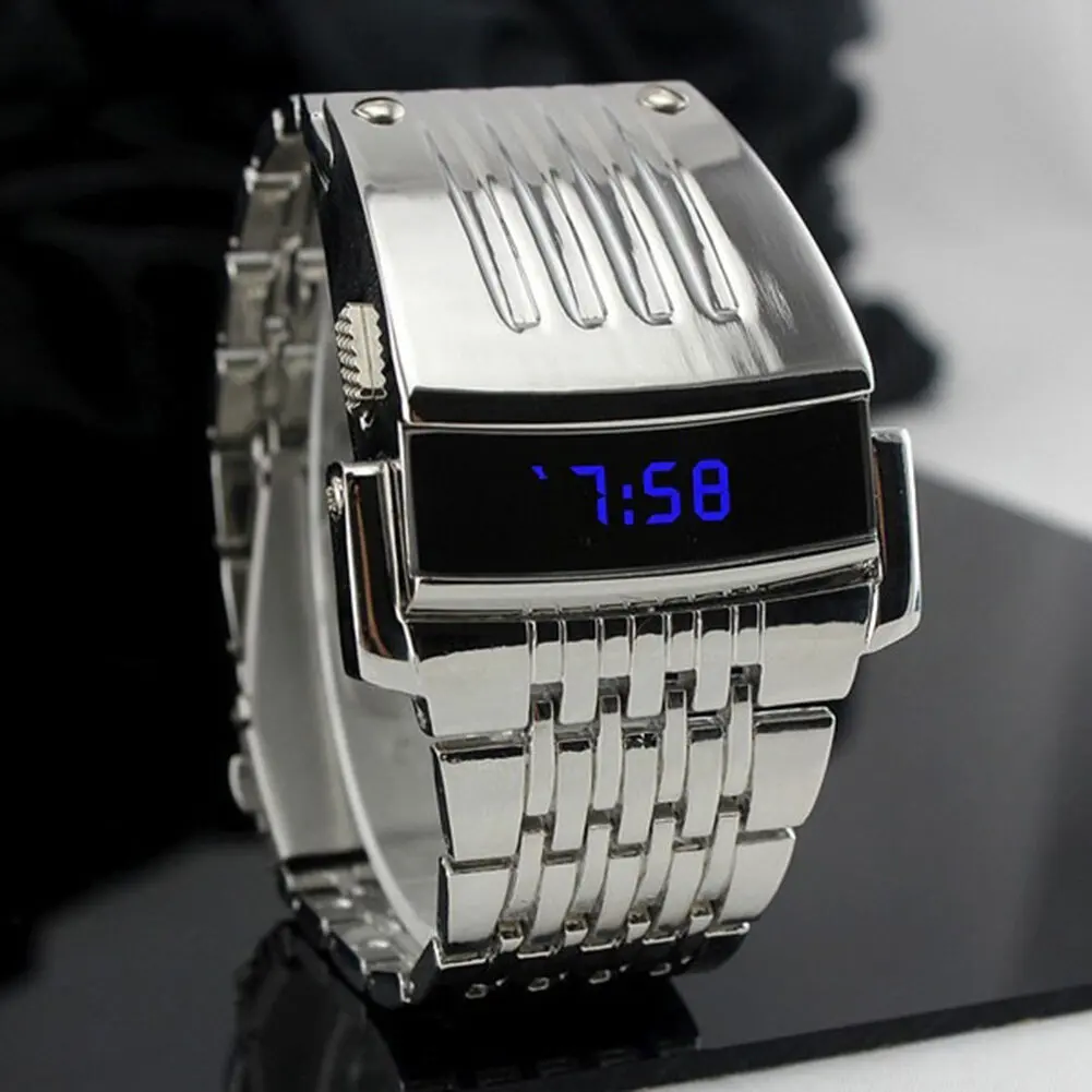 Часы наручные мужские электронные с ЖК-дисплеем из нержавеющей стали