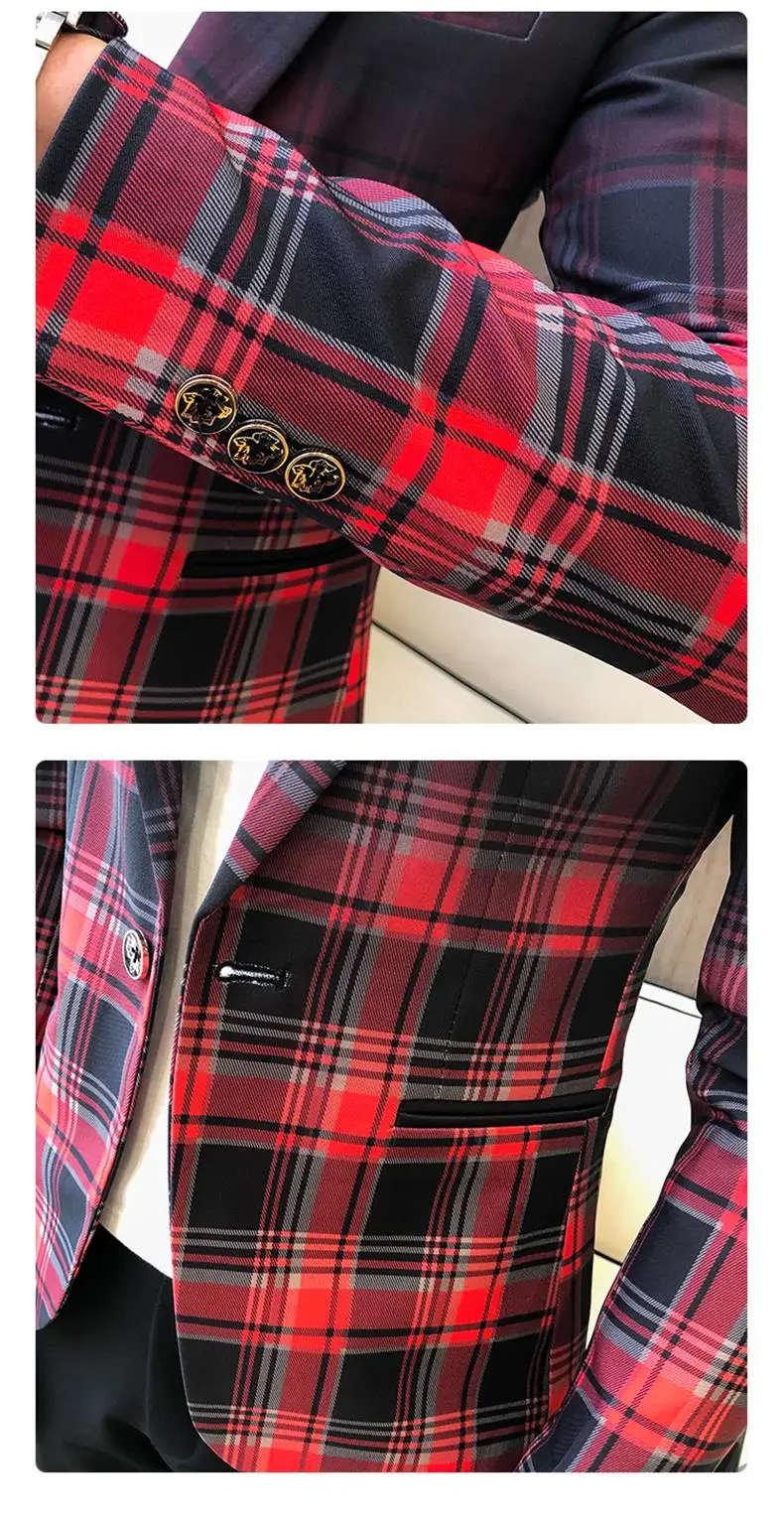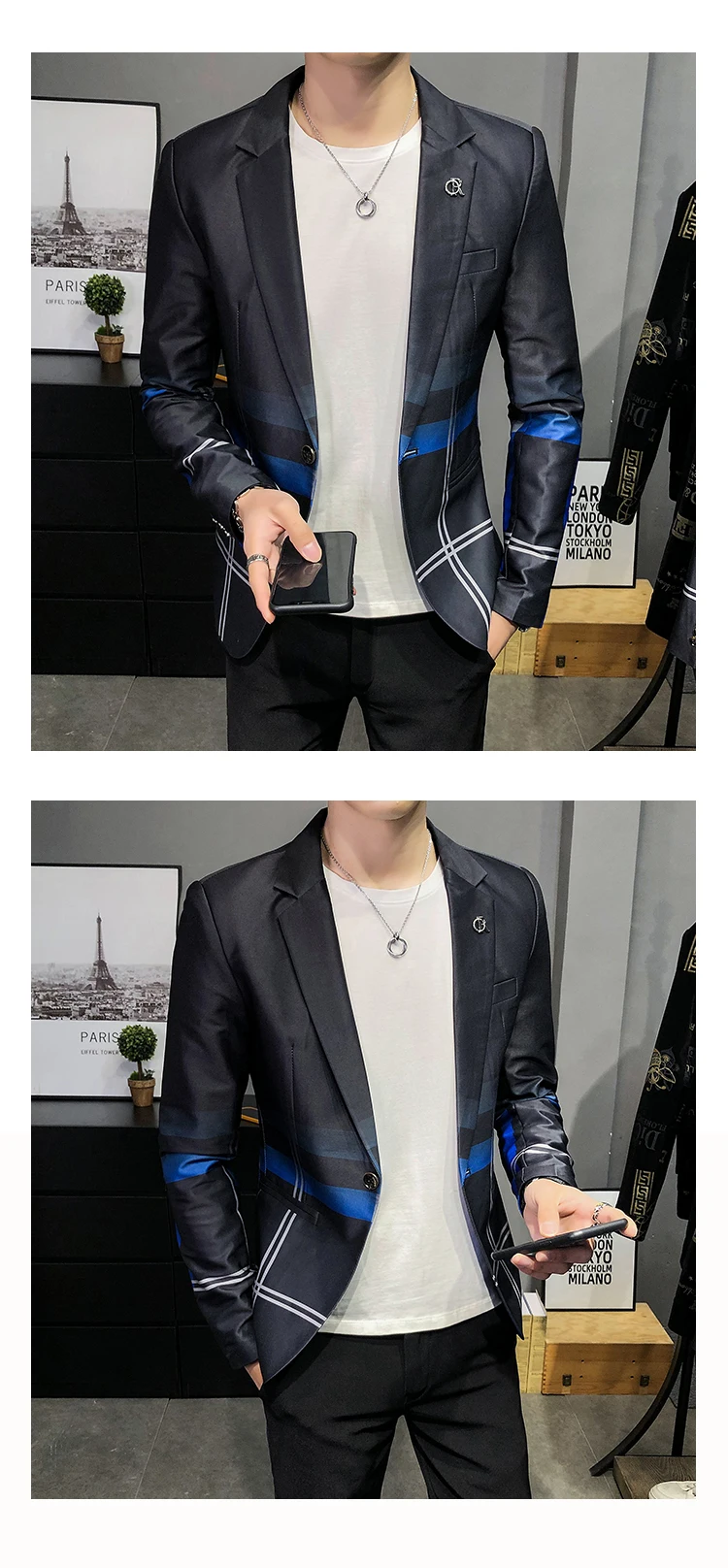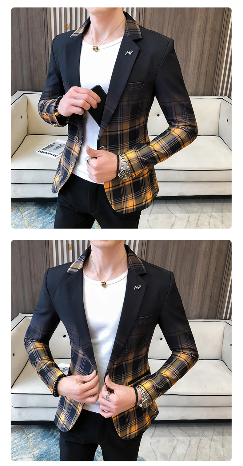Весна 2021, мужской Клетчатый Блейзер, Модный деловой Повседневный Мужской приталенный пиджак, Повседневное платье большого размера для банкета, свадьбы, вечеринки, клуба