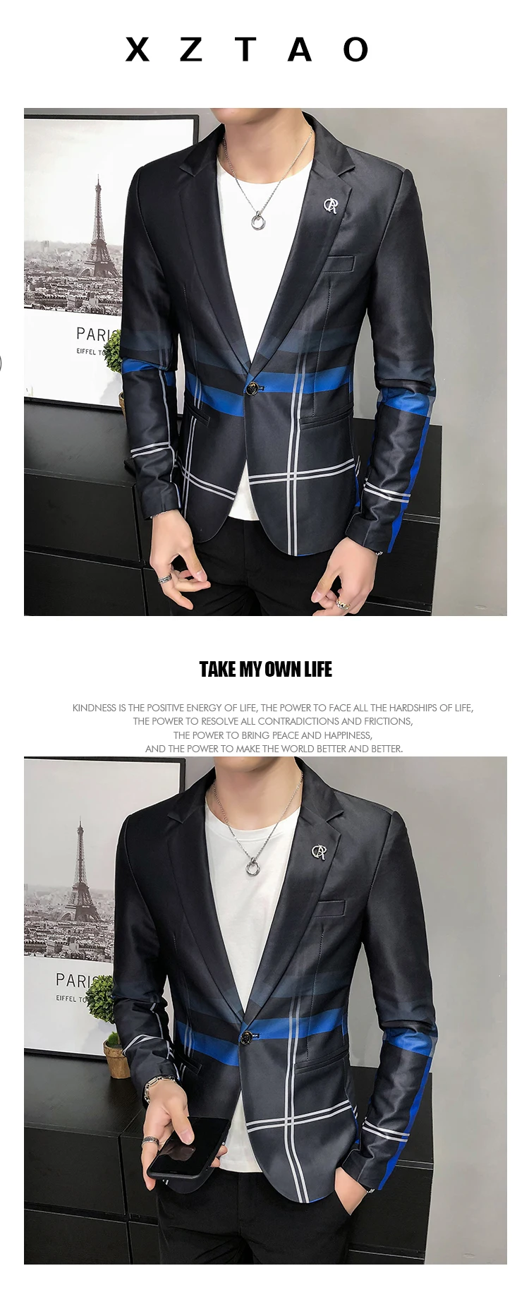 Весна 2021, мужской Клетчатый Блейзер, Модный деловой Повседневный ...