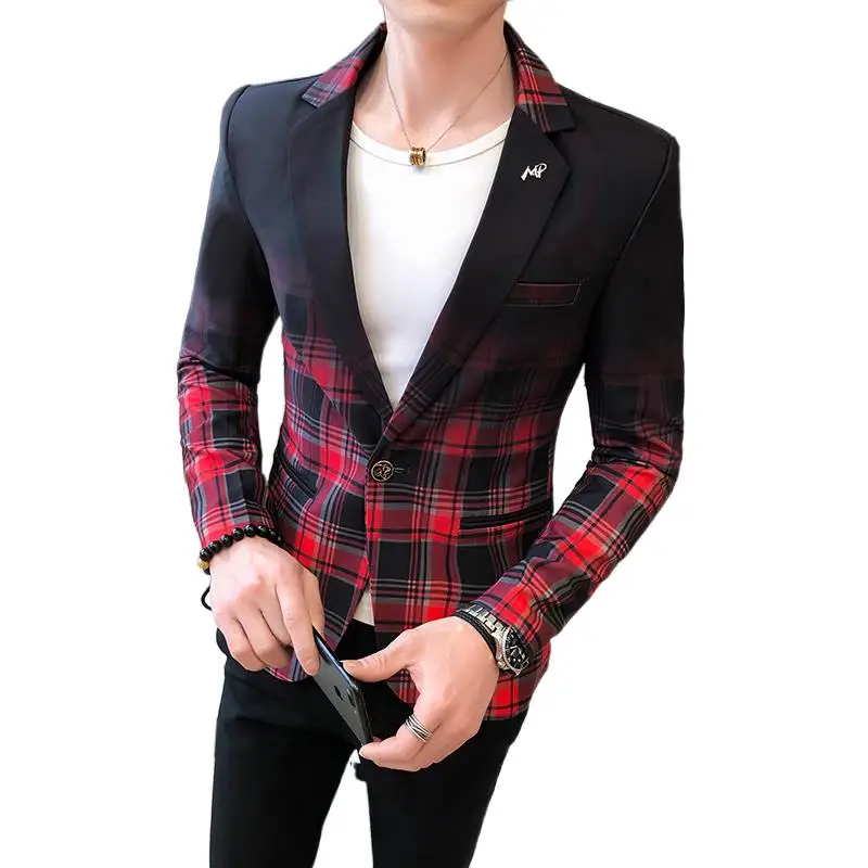 Мужской Блейзер, приталенный Блейзер в клетку с градиентом, весна 2020