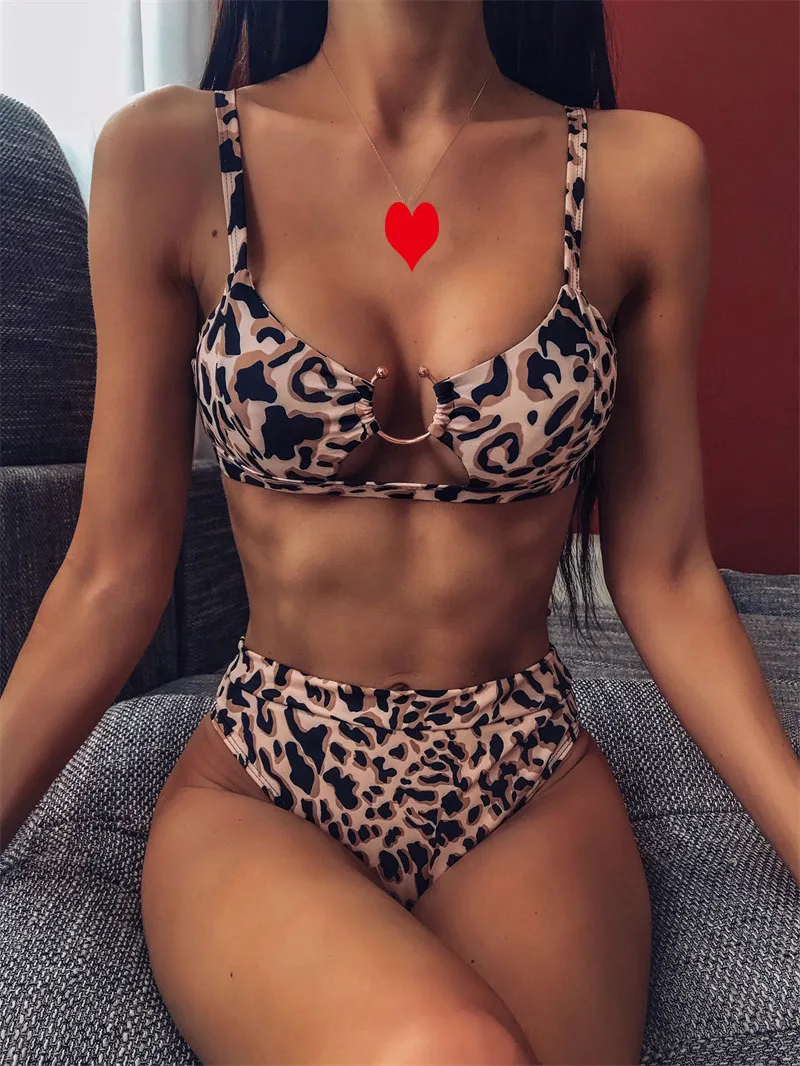 Женский раздельный купальник с леопардовым принтом, бикини пуш-ап с завышенной талией и змеиным принтом, бразильский купальник-бандо, лето 2021
