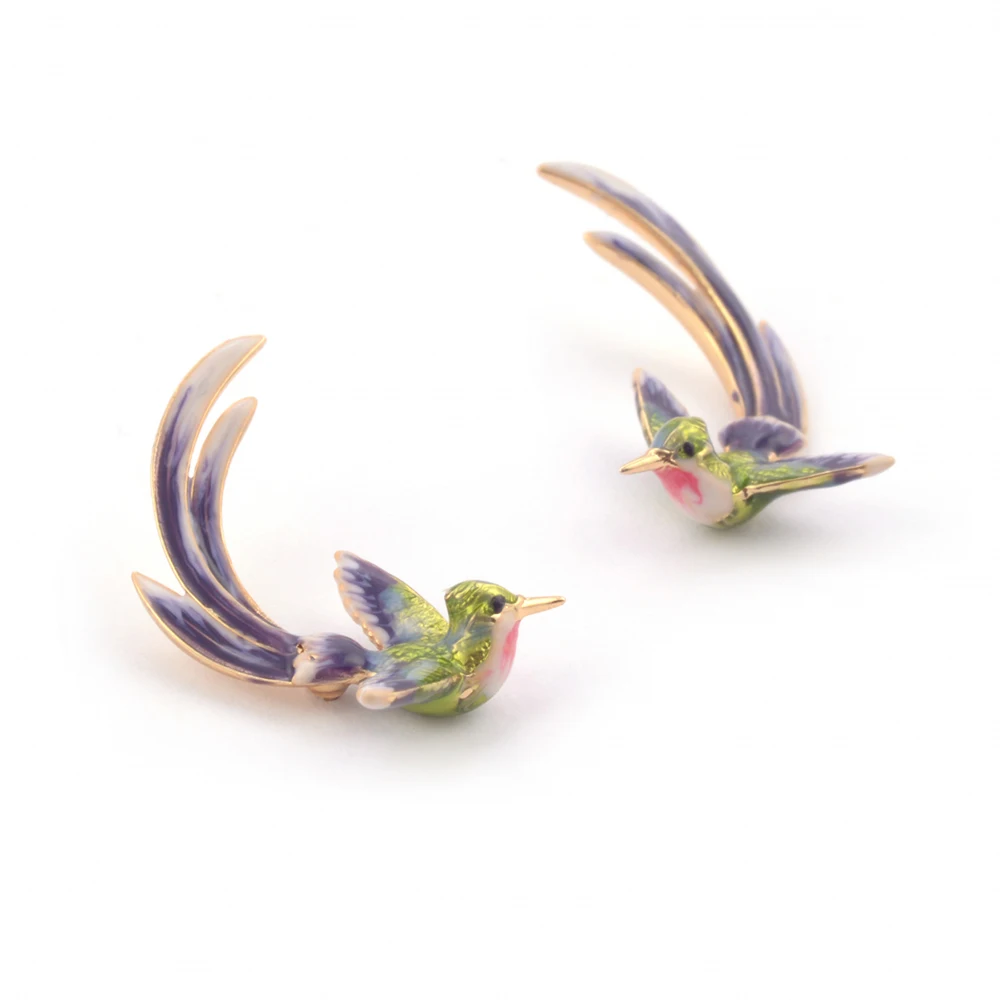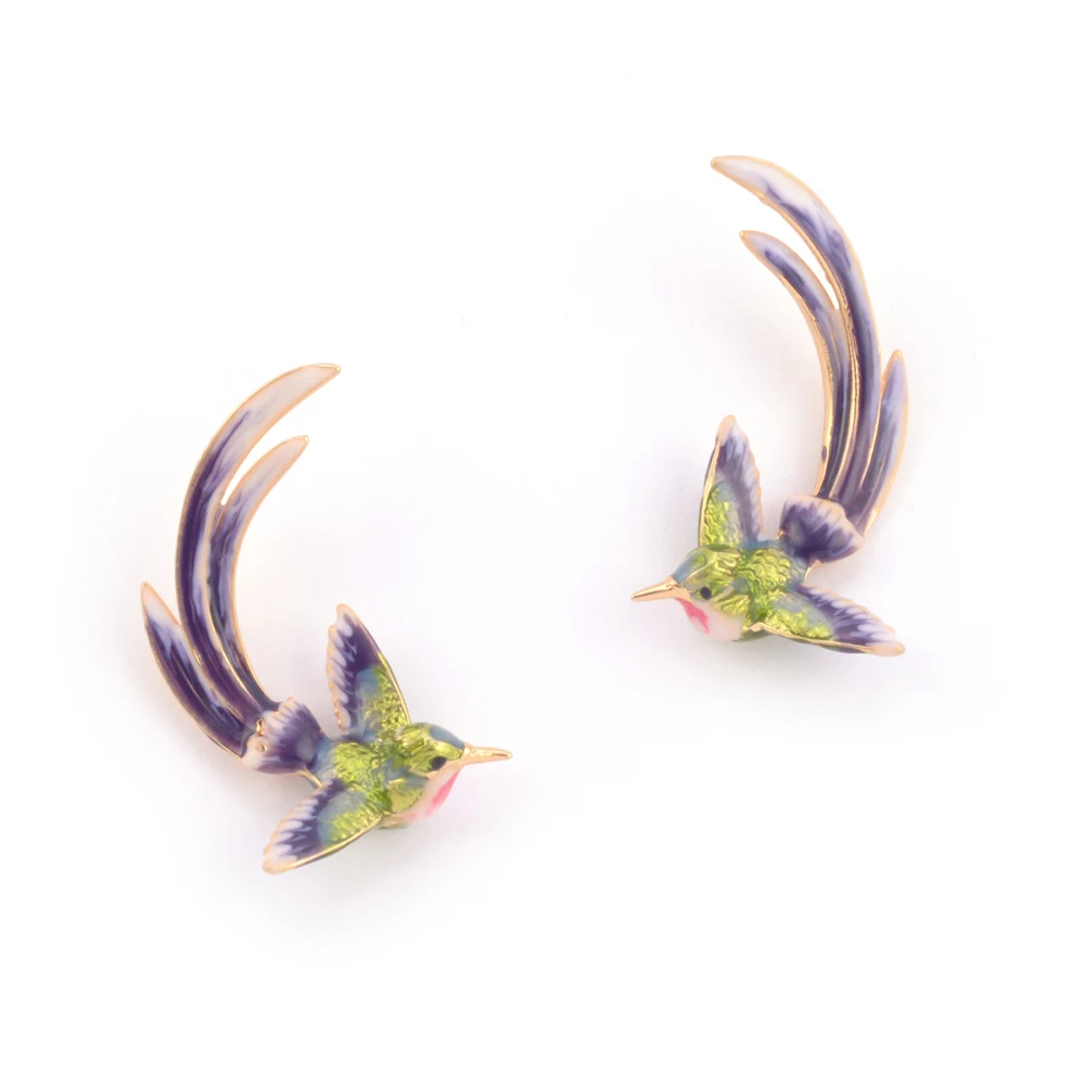 Женские винтажные серьги-гвоздики, с эмалью, с изображением птиц