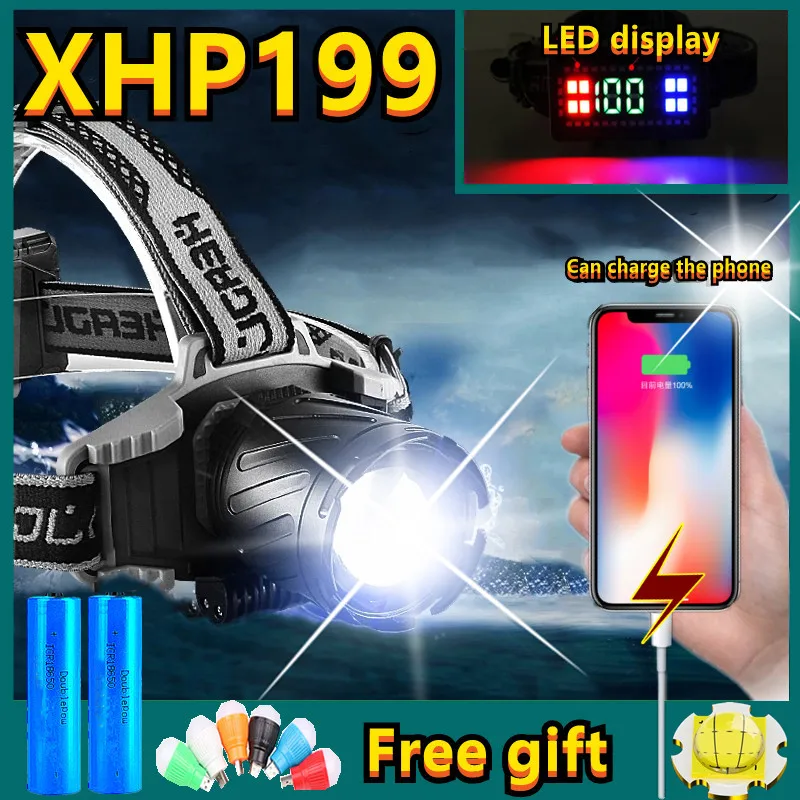 Новый мощный светодиодный налобный фонарь XHP199 Мощный светодиодный налобный фонарь XHP160 18650 налобный фонасветильник перезаряжаемый налобный фонарь с зумом