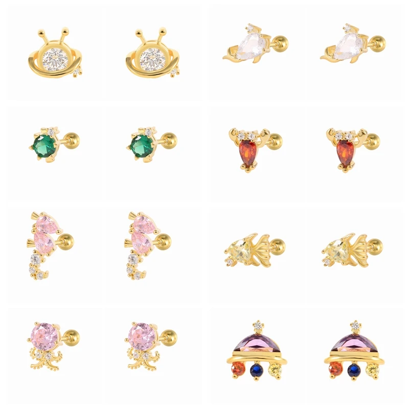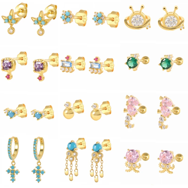Серьги-гвоздики женские из стерлингового серебра 925 пробы, с крист...