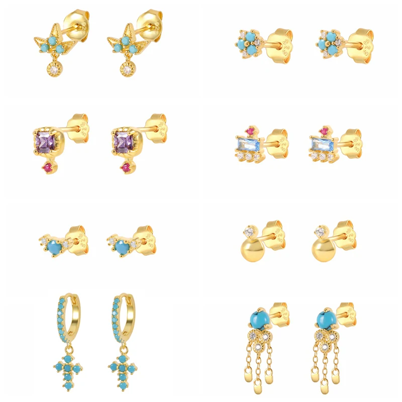 Серьги-гвоздики женские из серебра 100% пробы с бирюзовым цирконием