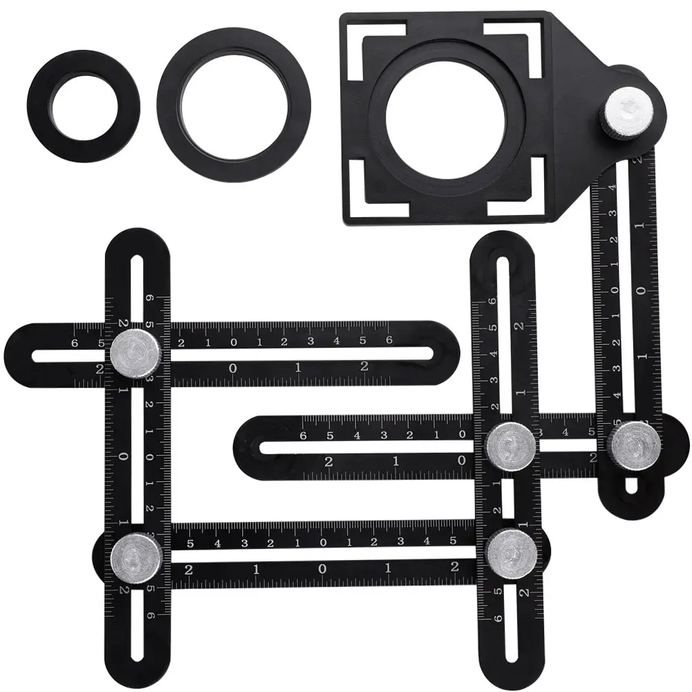 Многоугольная измерительная линейка, набор из 6 сложений для плитки, перфорированный инструмент шаблон формы, сверло для установки кладки, универсальное направляющее отверстие для плитки
