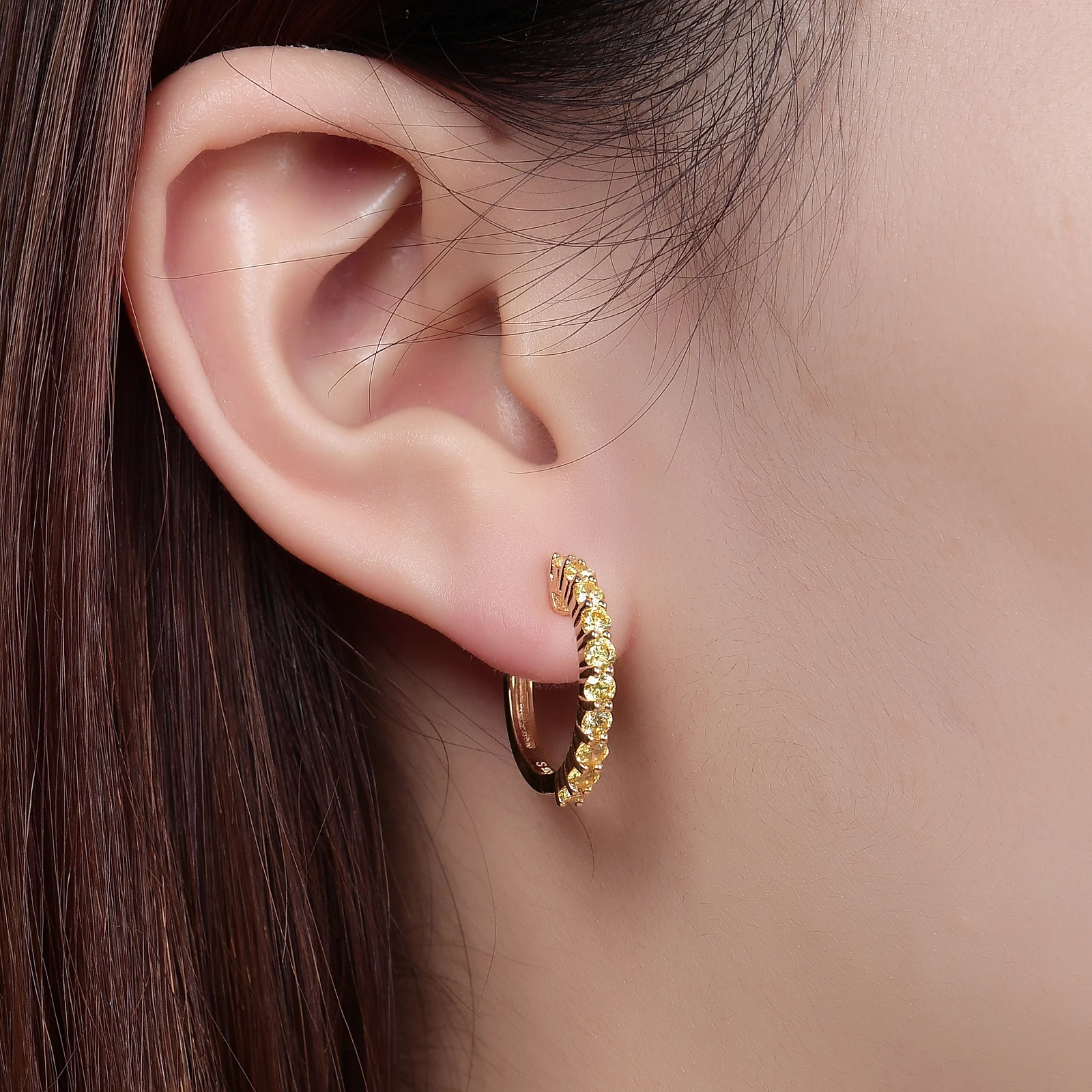 Серьги-кольца женские из серебра 14 карат, круглые, с имитацией бриллиантов