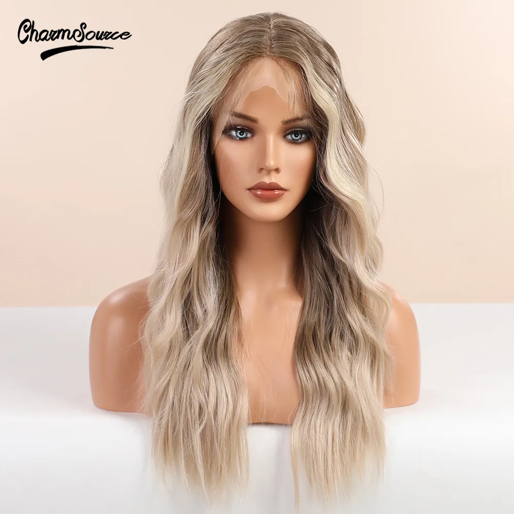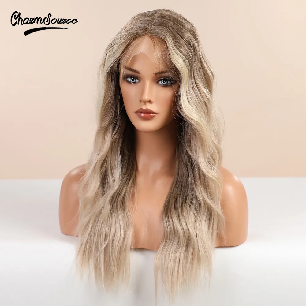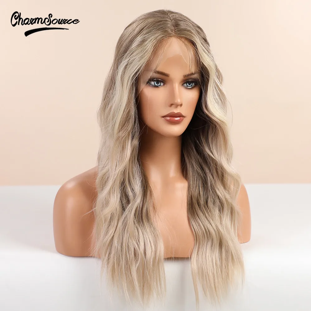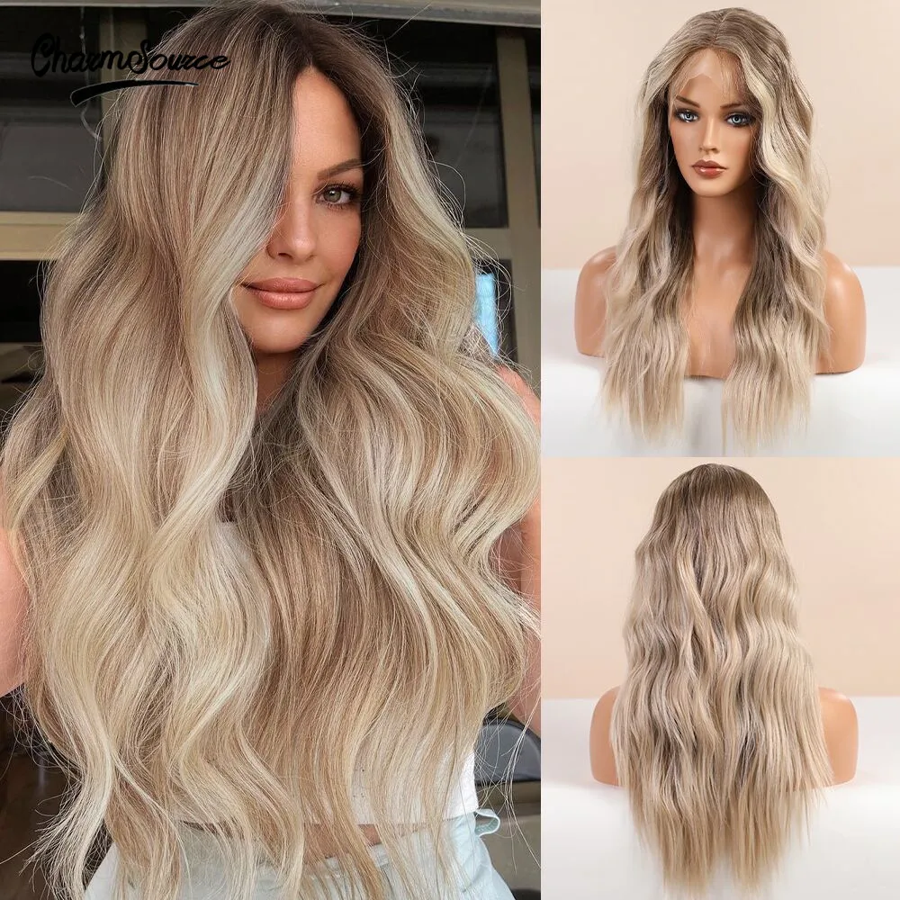 Парик CharmSource длинные коричневые светлые волосы с эффектом омбре, волнистые передние парики на сетке, синтетические волосы для белых и черных женщин, парик для повседневного использования, высокая плотность