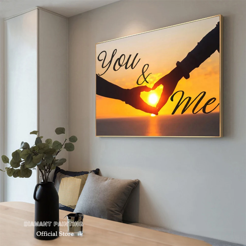5D полная алмазная живопись закат две руки любовь вышивка крестиком Алмазная вышивка Ландшафтная мозаика с бриллиантами Декор для дома ручной работы