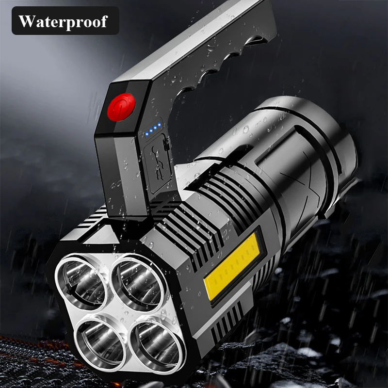 Высокомощные светодиодные фонарики с четырьмя головками, мощный ярк...
