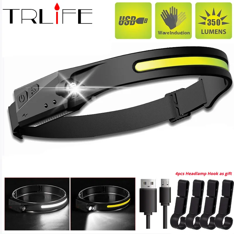 Индукционный налобный фонарь на 2400 мА ч, портативный светодиодный налобный фсветильник рь с COB матрицей, фонарь с USB-зарядкой, водонепроницаемый налобный фонарь, светильник для кемпинга