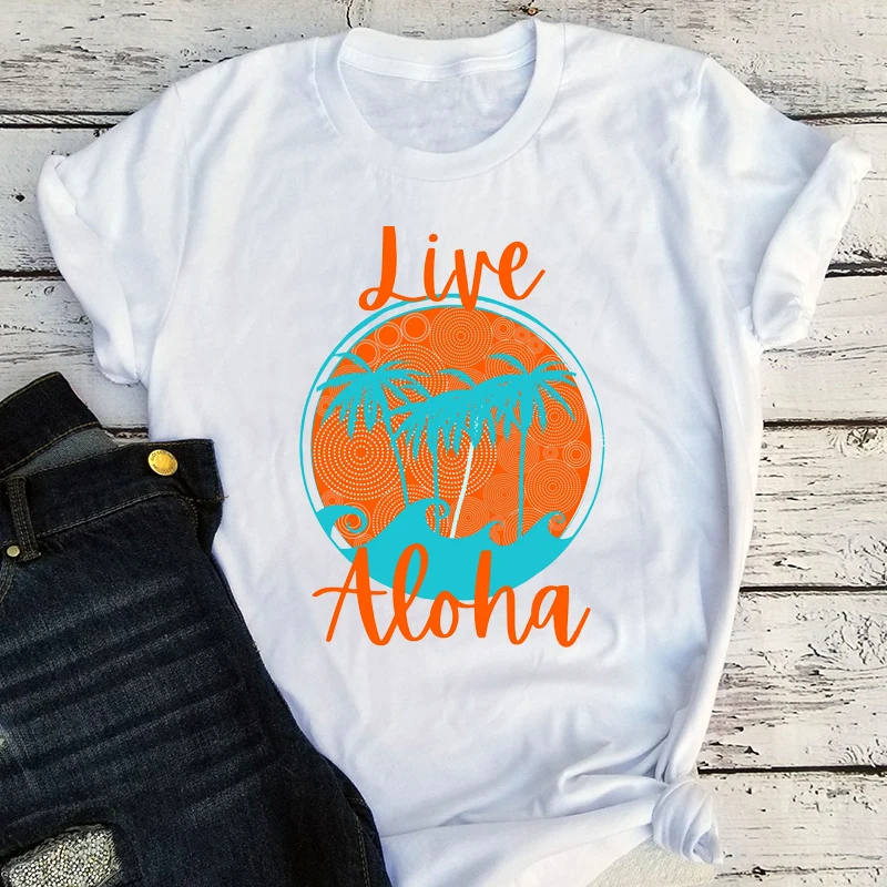 Футболка Aloha женская с буквенным принтом, модная винтажная пляжна...
