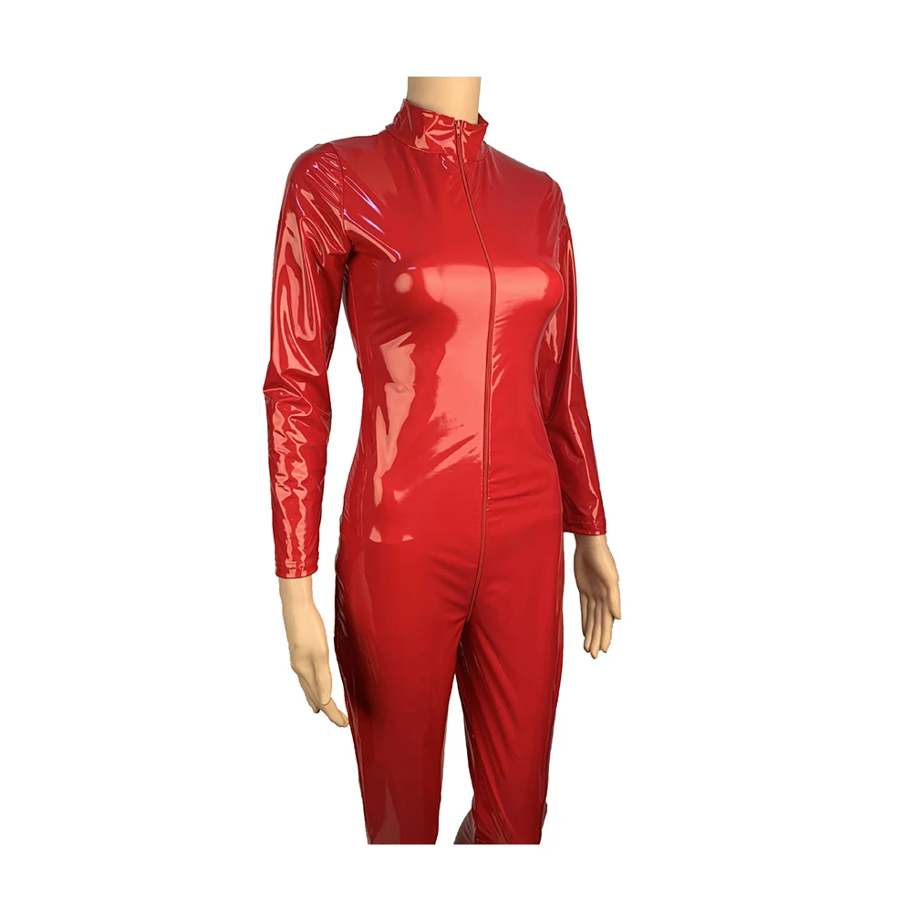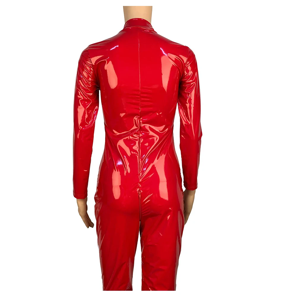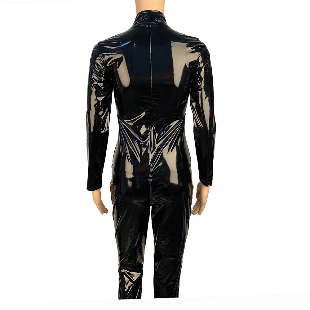 Блестящие Эротические комбинезоны для вечевечерние НКИ из ПВХ с длинным рукавом и молнией