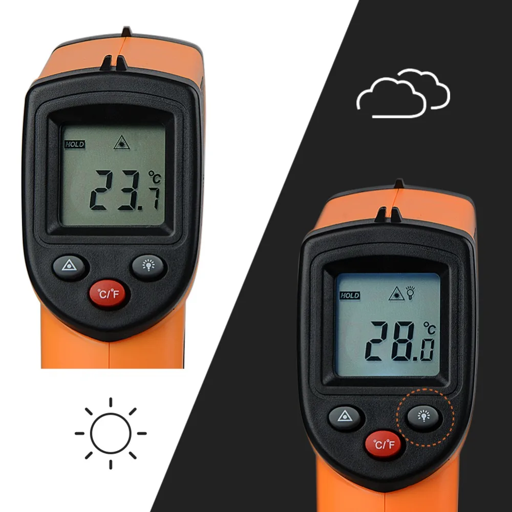 Инфракрасный термометр ANENG GM320 безопасно и быстро используется для измерения температуры поверхности объекта без контакта. Устройство оснащено лазером, который используется для прицеливания, состоит из оптики, датчика температуры, усилителя сигнала, цепи обработки и ЖК-дисплея.