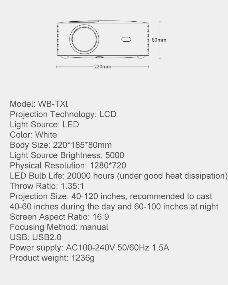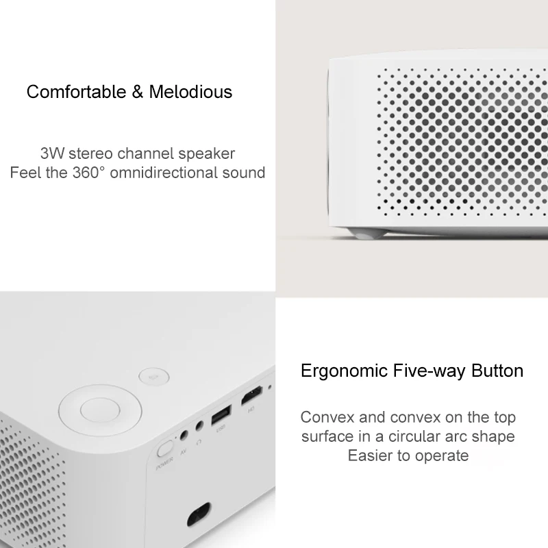 Физическое разрешение 1280, Расшифровка до 720 p четкая и четкая, цвета более яркие и яркие, а большой проекционный экран не имеет границ, что исключает помехи в поле зрения.