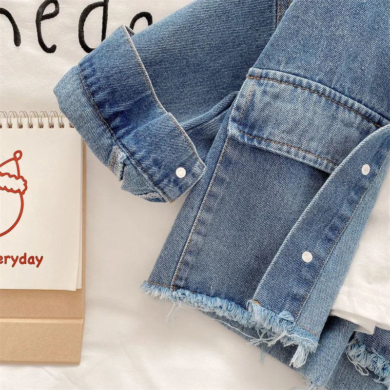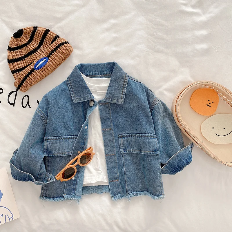 Детская джинсовая куртка, демисезонная Модная Джинсовая куртка для мальчиков, джинсовая куртка для девочек, джинсовая одежда, детская куртка