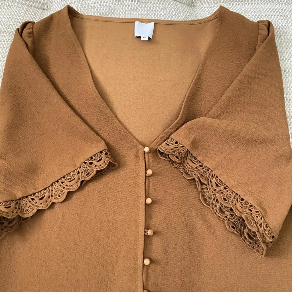 Женская кружевная блузка с коротким Расклешенным рукавом, V-образным вырезом