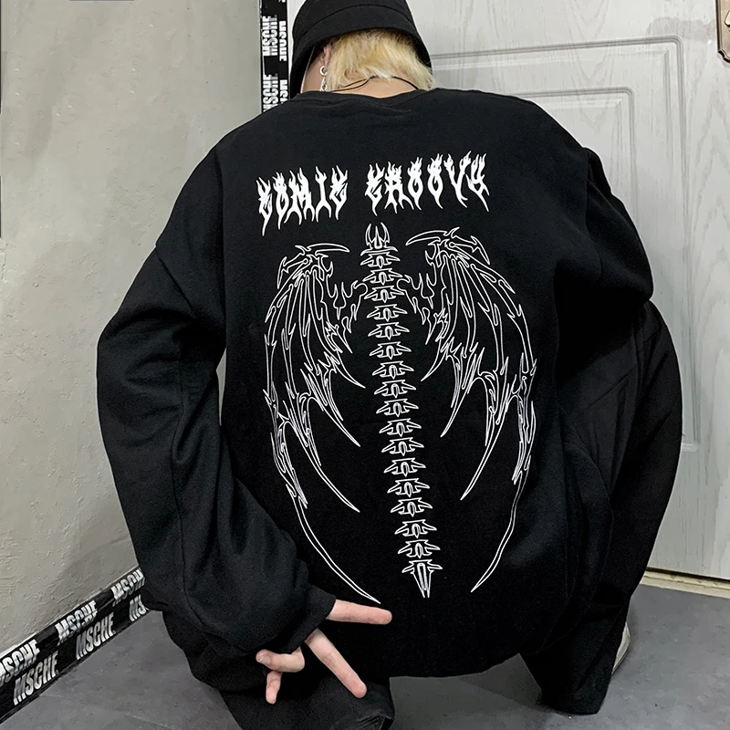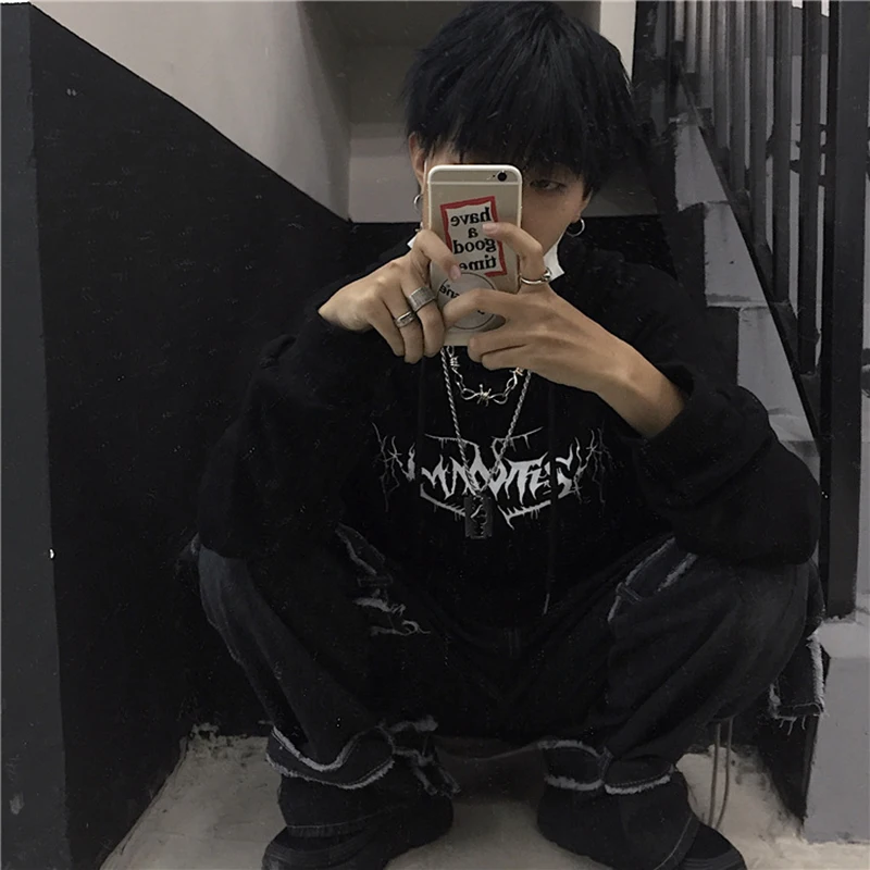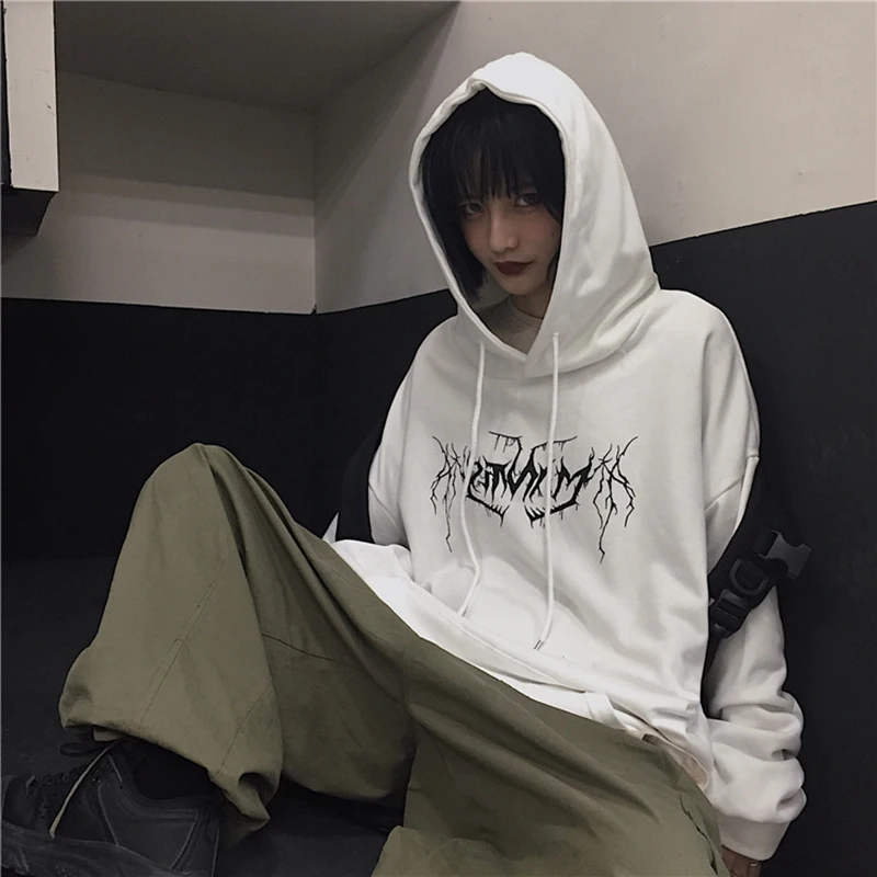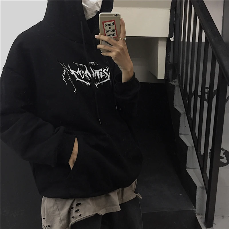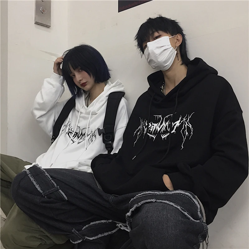 Толстовка Мужскаяженская с молнией, свитшот с длинным рукавом и капюшоном в готическом стиле, Свободный пуловер в стиле хип-хоп, уличная одежда в стиле Харадзюку, большие размеры