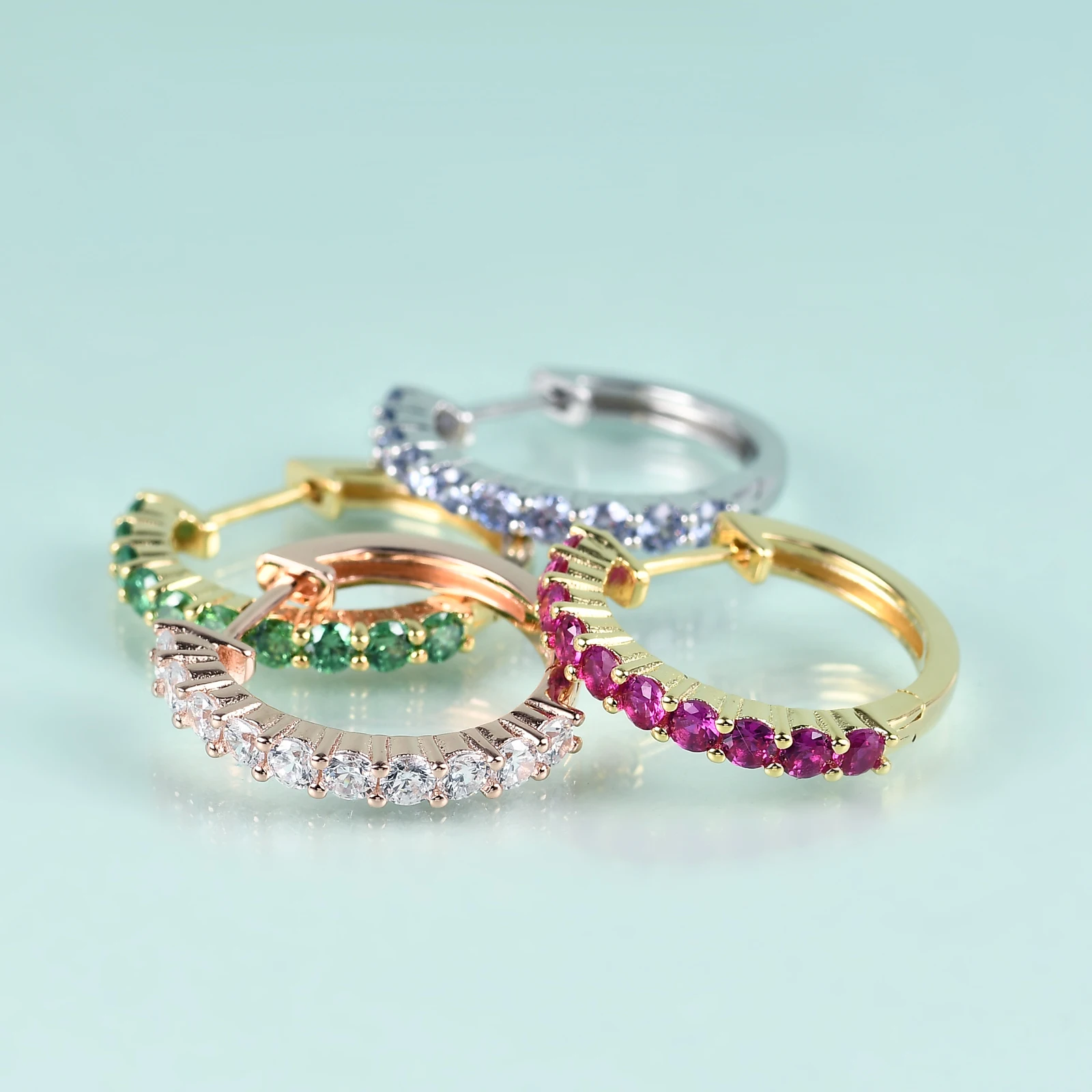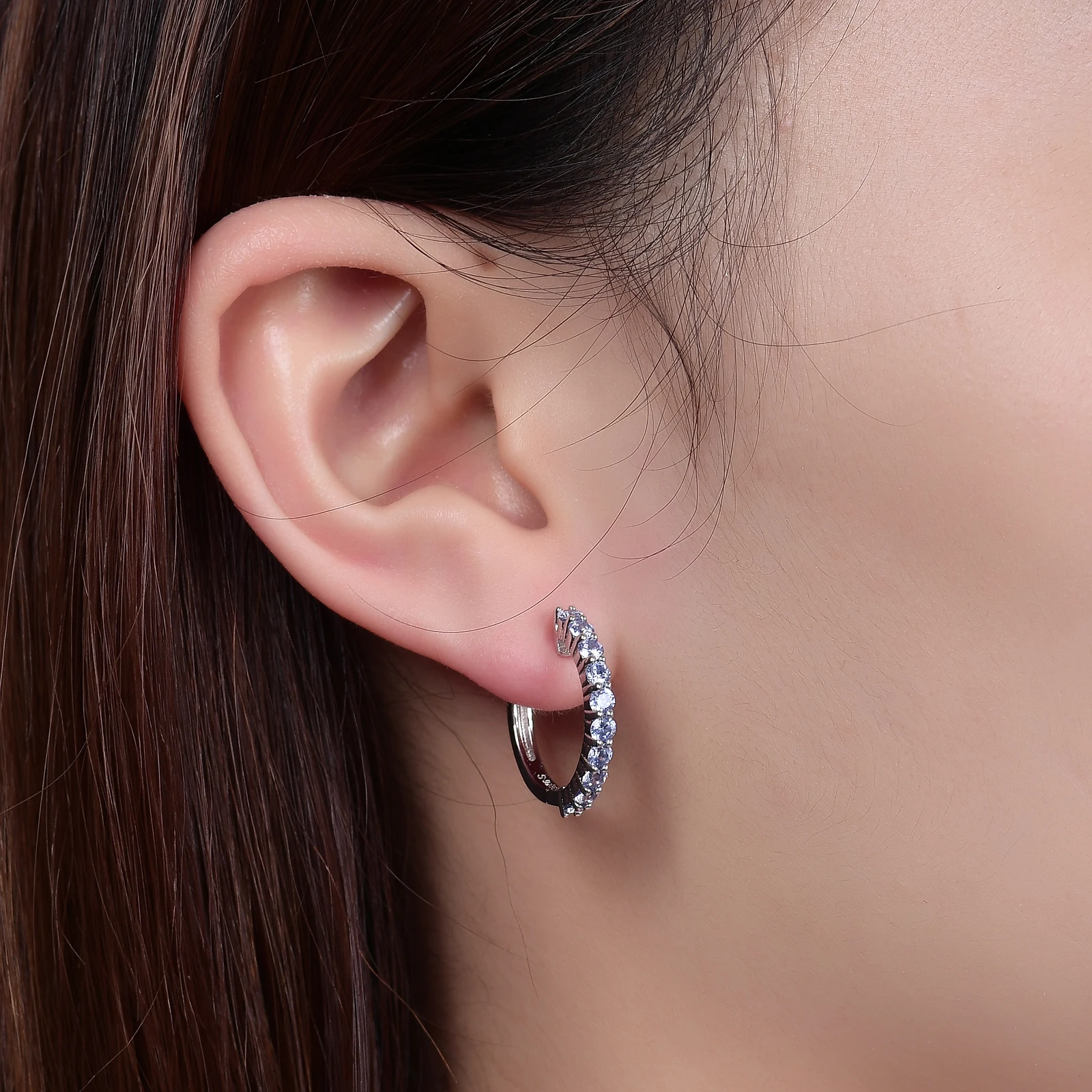 Серьги-кольца женские из серебра 14 карат, круглые, с имитацией бри...