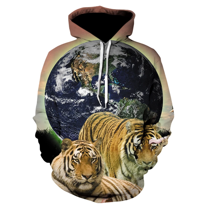 Женская Повседневная Толстовка с капюшоном и 3D-принтом тигра